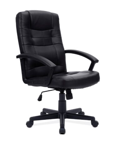 Nautilus Designs Orion High Back Bonded Leather Executive Office Chair With Integrated Lumbar Support and Fixed Arms Black – BCL/Z2207/BK DD