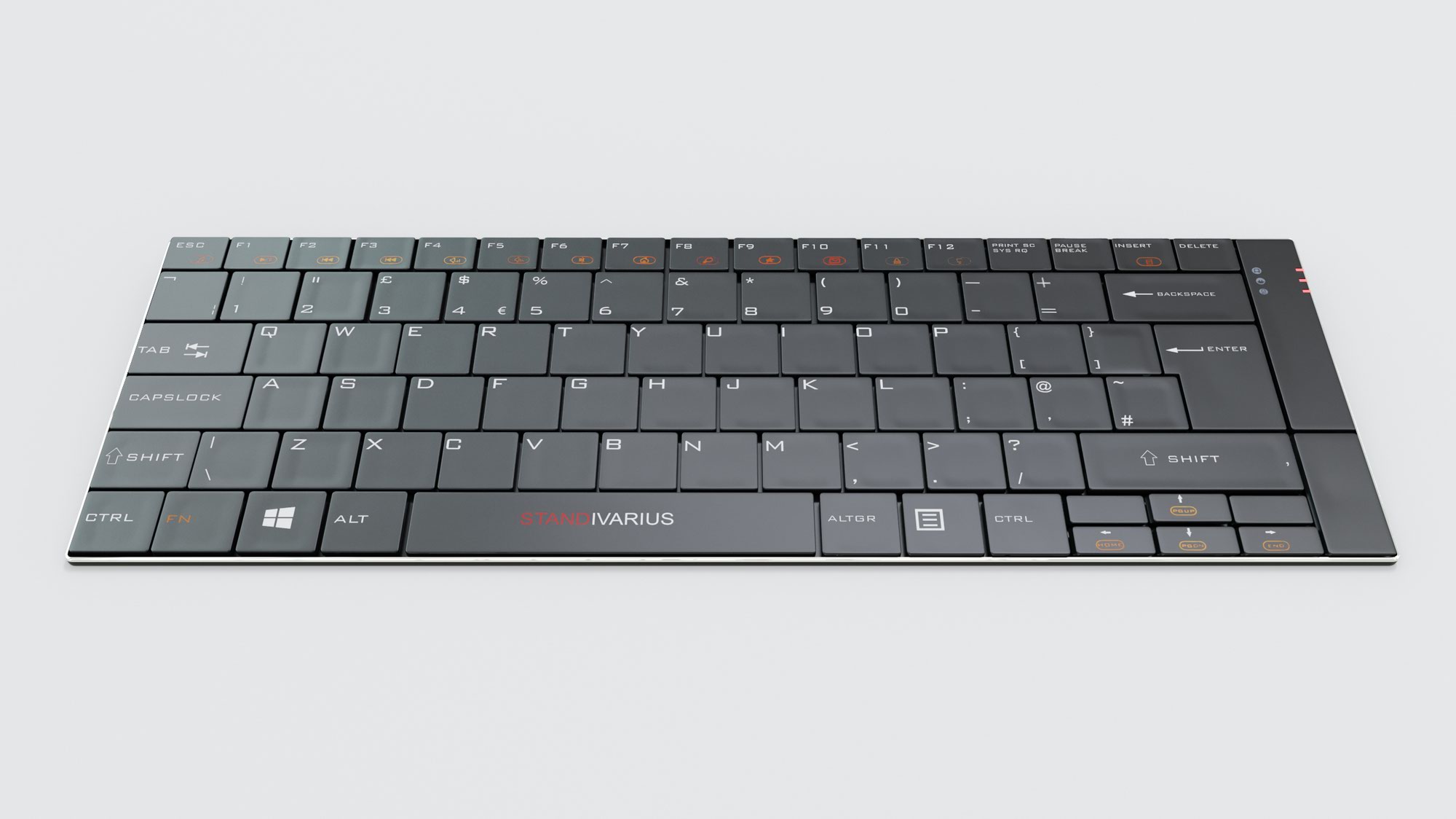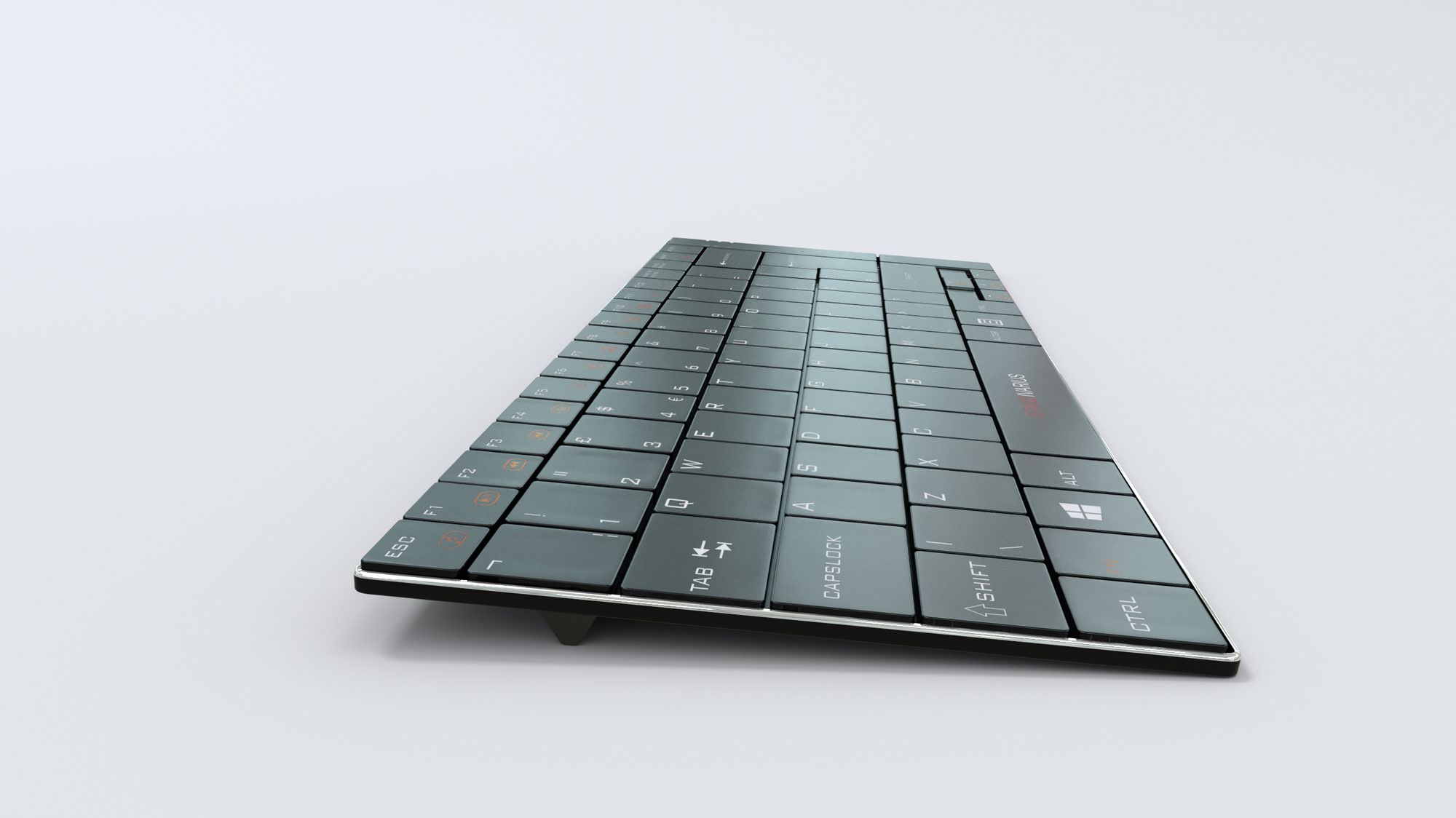 • Low travel, scissor-key structure with rigid aluminium casing