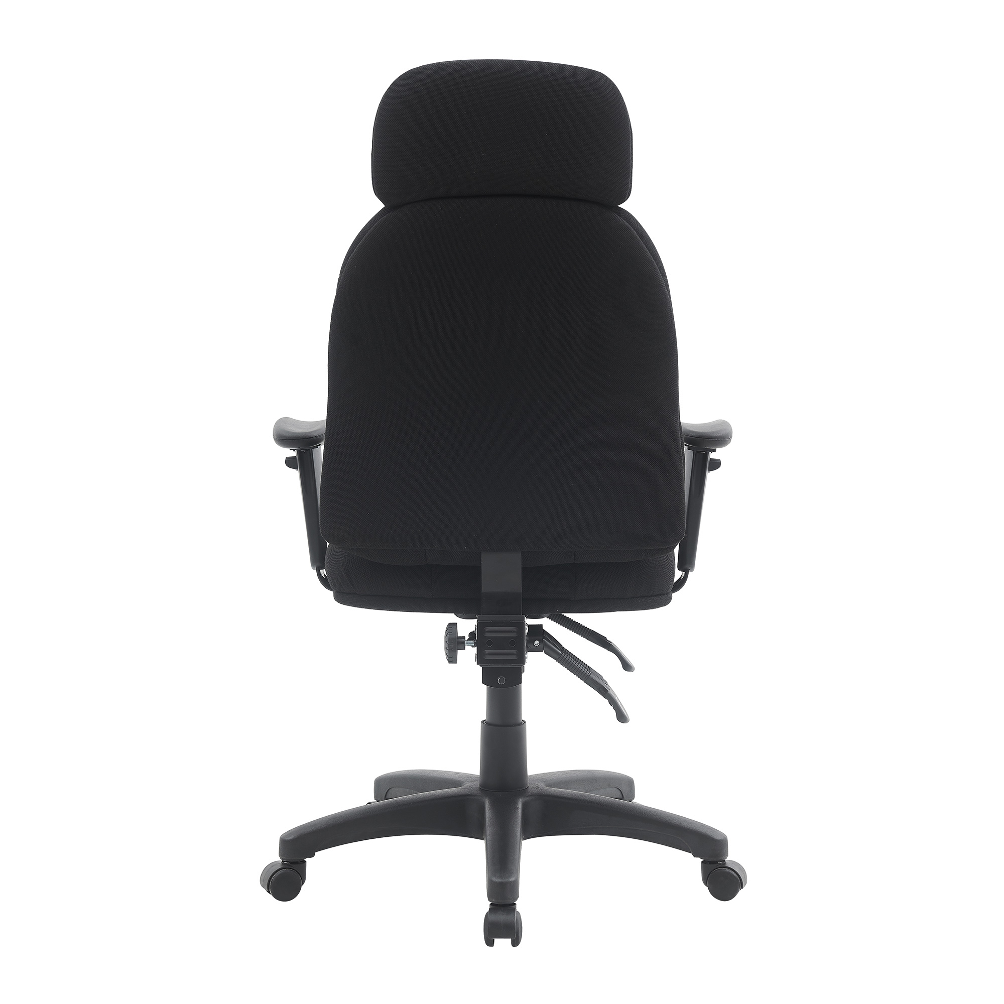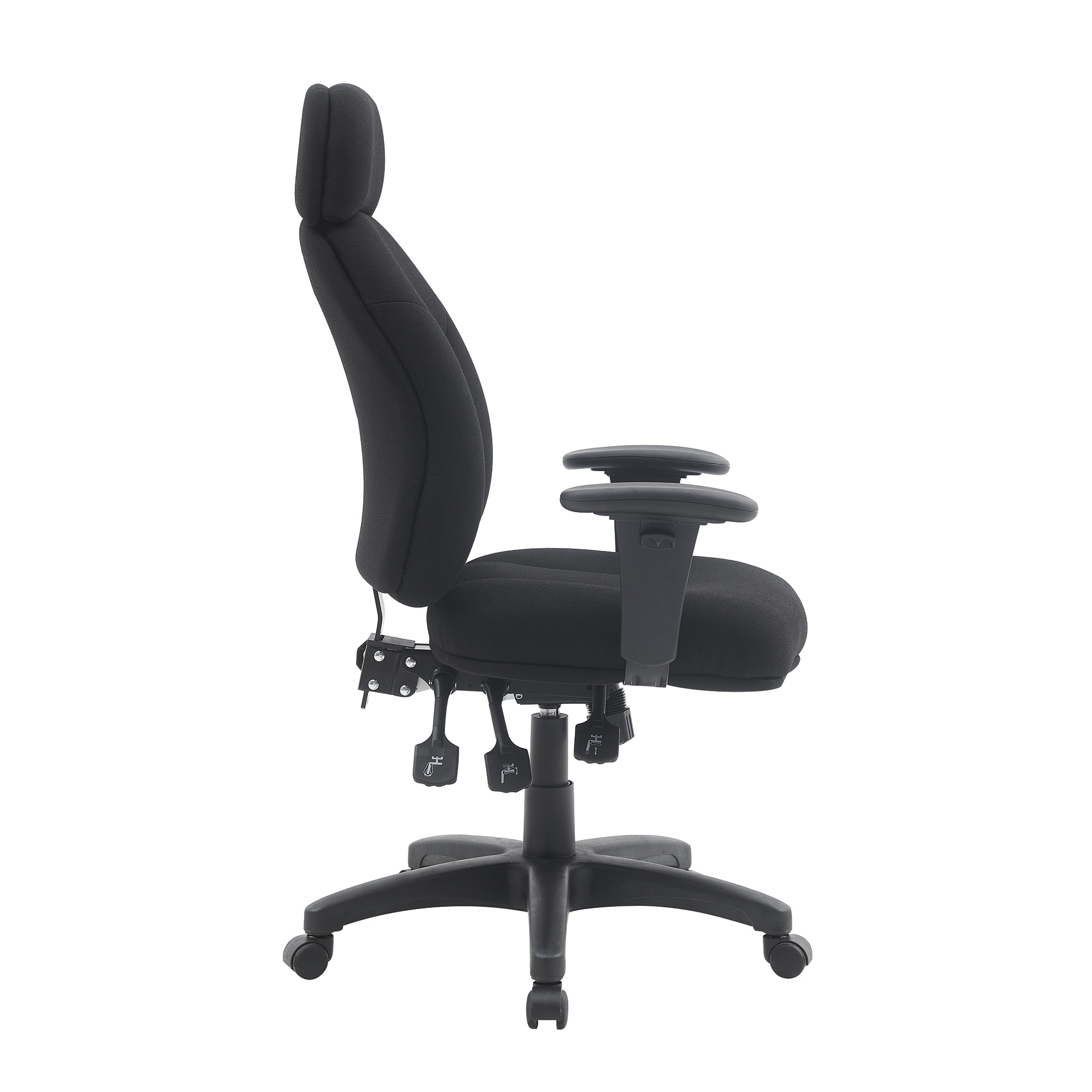 24 Hour High Back 3 Lever Fabric Operator Chair with Height Adjustable Arms – Black