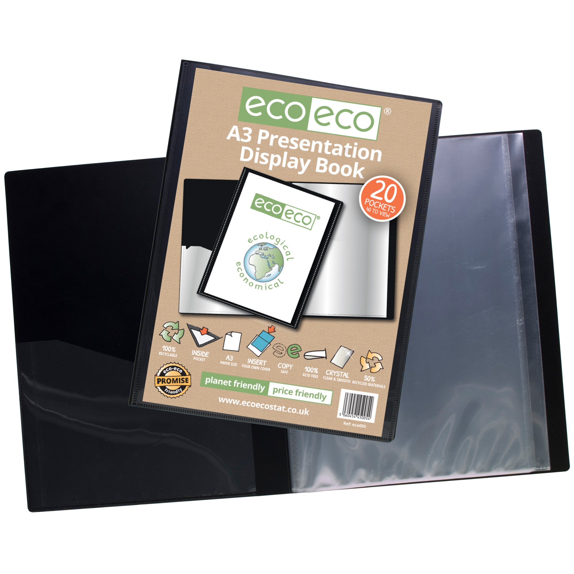 Eco Eco A3 50% Recycled Presentation Display Book with 20 Pockets – Single