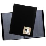 Strong and flexible black 400 micron cover display book, ideal for home, office and professional use. Clear additional storage pocket featured inside of front cover to house loose items and documents. A total of 20 pages (40 sides to view) securely bound for optimum and multi-purpose filing. 40 micron pages are acid free, smooth, glass clear and copy safe. These pages securely hold A4 documents. Made from 100% recycled materials, product and packaging both 100% recyclable.