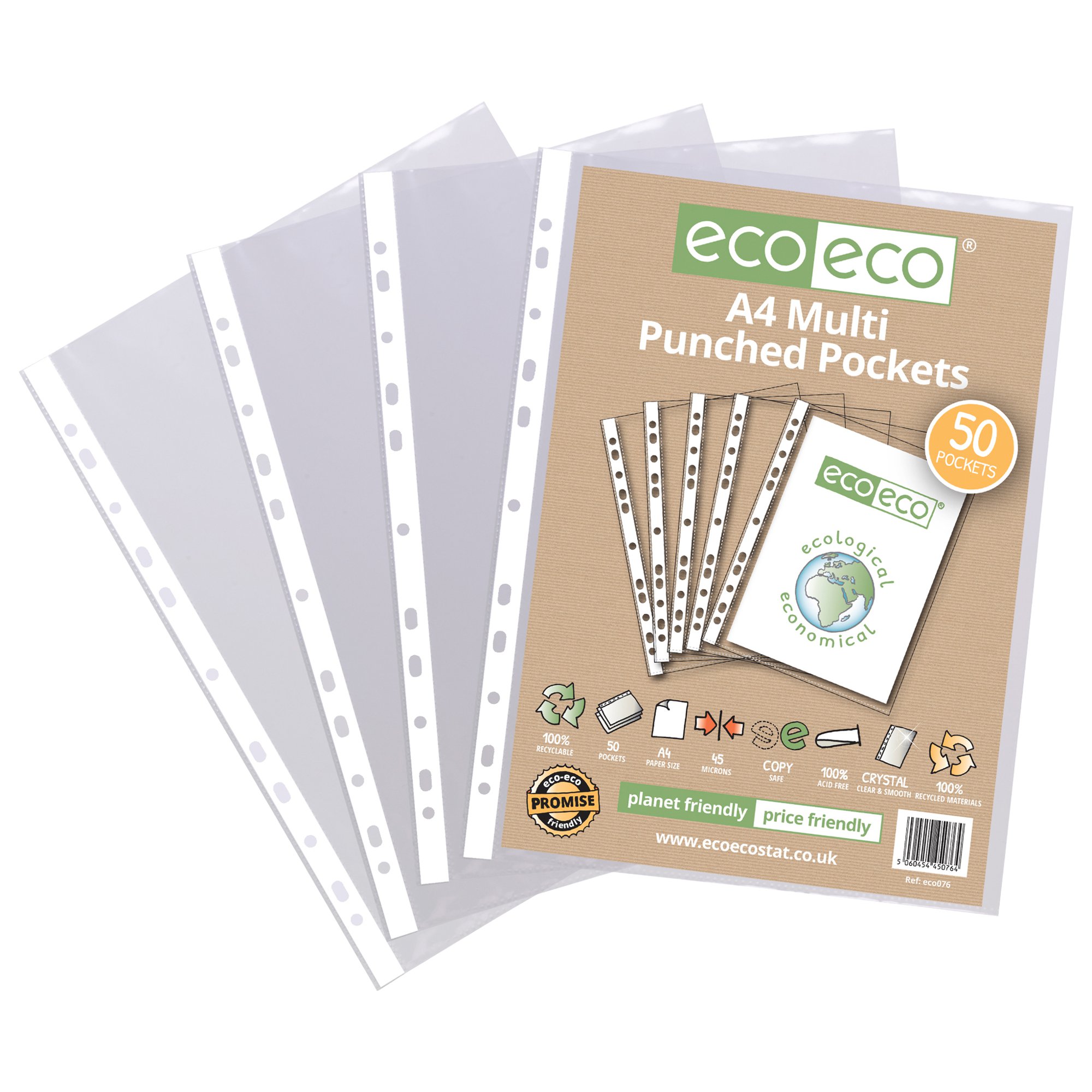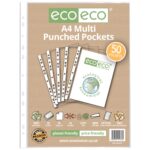 Eco Eco A4 100% Recycled Bag Multi Punched Pockets – Pack of 50