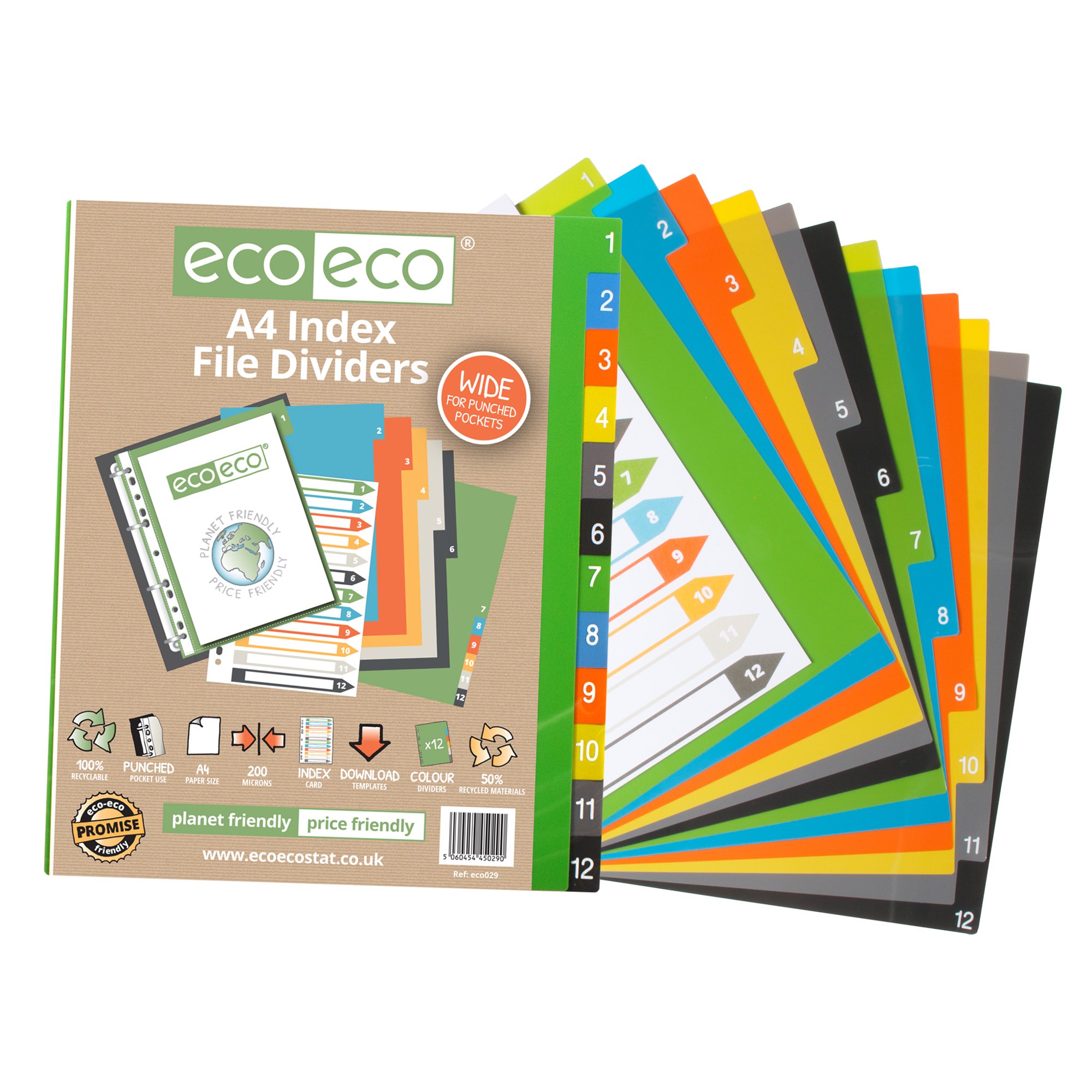 Eco Eco A4 50% Recycled Wide Index File Dividers – 1 Set of 12
