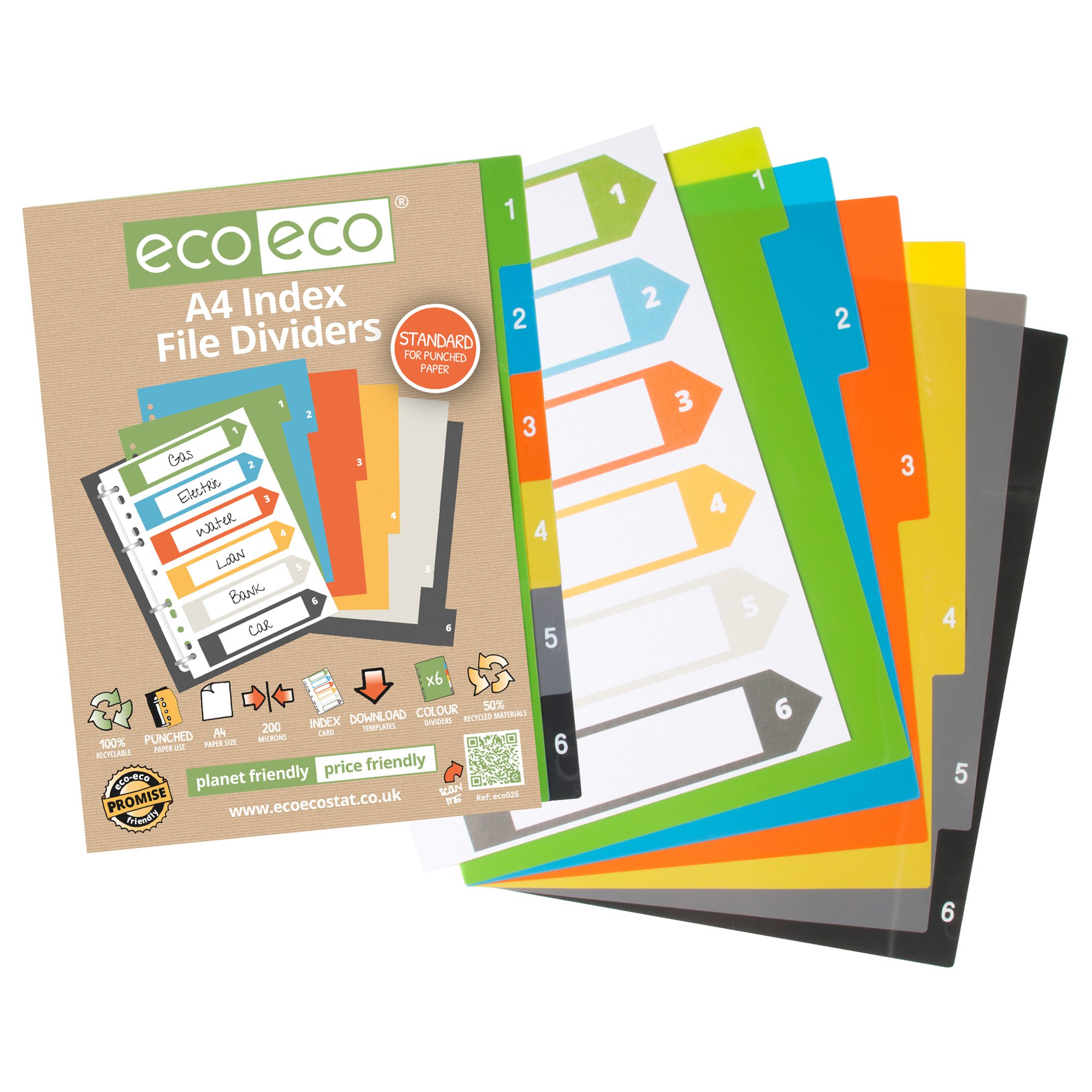 Eco Eco A4 50% Recycled Index File Dividers – 1 Set of 6