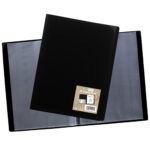 Strong and flexible black 400 micron cover display book, ideal for home, office and professional use. Clear additional storage pocket featured inside of front cover to house loose items and documents. A total of 40 pages (80 sides to view) securely bound for optimum and multi-purpose filing. 40 micron pages are acid free, smooth, glass clear and copy safe. These pages securely hold A5 documents. Made from 100% recycled materials, product and packaging both 100% recyclable.