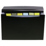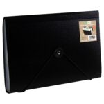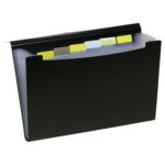 Strong black 700 micron expanding file with clear 160 micron A5 size internal compartments and elasticated closure. A total of 7 compartments which are ideal for multi purpose filing. Responsibly sourced materials and responsibly produced. Made from 50% recycled materials, product and packaging both 100% recyclable.