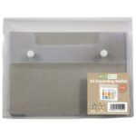 Strong 400 micron strength A5 size wallet, ideal for home, office and professional use. Expanded bottom and sides for extra capacity, securely holds A5 documents with 2 press stud closure. Clear visibility with smooth finish and superior strength. Acid free and copy safe. Responsibly sourced materials and responsibly produced. Made from 95% recycled materials, product and packaging both 100% recyclable.
