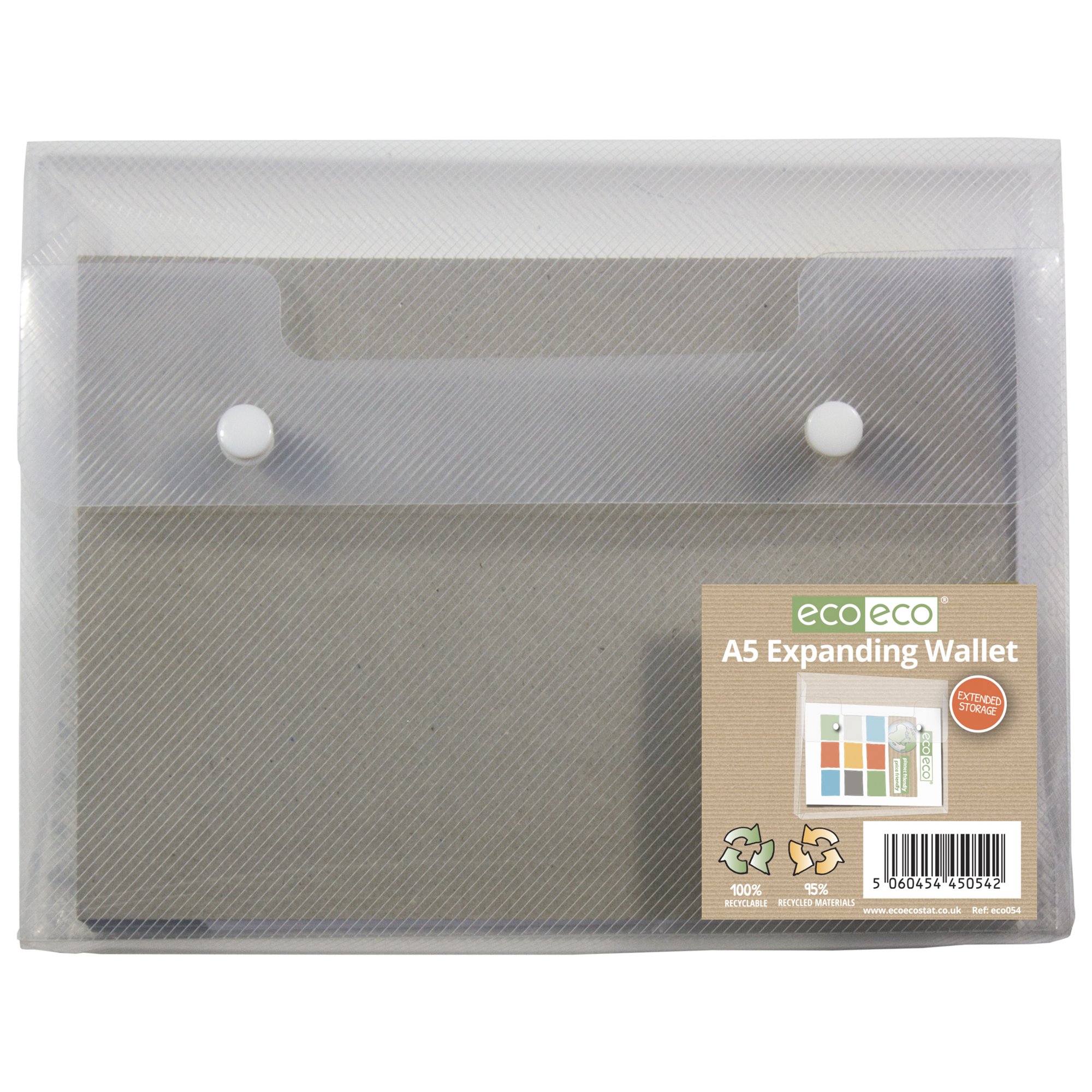 Eco Eco A5 95% Recycled Expanding 2 Stud Wallet – Single