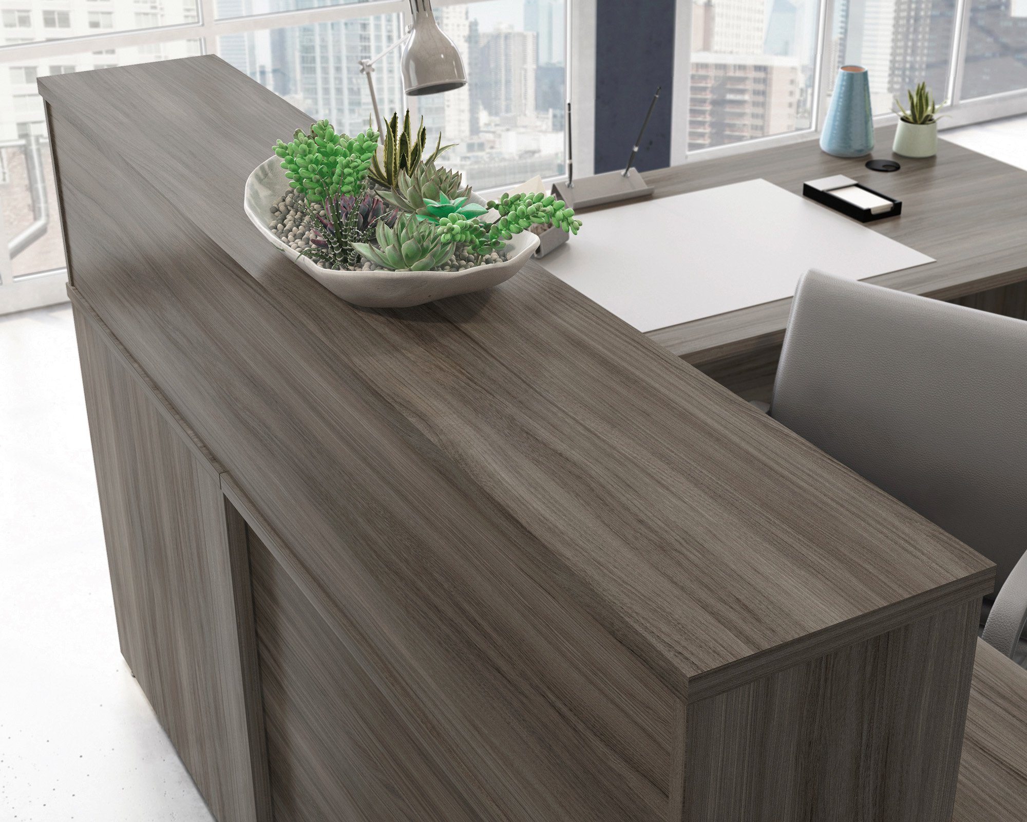 The Teknik Office Affiliate 1800 Low Reception Hutch is our functional and commercial style option for all manner of colour schemes and work spaces. This hutch offers a very durable and efficient solution for creating additional storage for your office needs, keeping your current Affiliate desk clutter free. It has two open storage cubbies which are ideal for open display storage, some picture frames or even a plant or 5! The melamine top surface is heat, stain and scratch resistant. Beautifully finished in a Hudson Elm effect, this is a perfect match for current Affiliate desking codes in several combinations: 5427422 and 5427427 (when used in an L-Shape, can also be attached to either desks separately). There are also other matching cupboards, desks, hutches and bookcases within the Affiliate range which will complement this item.