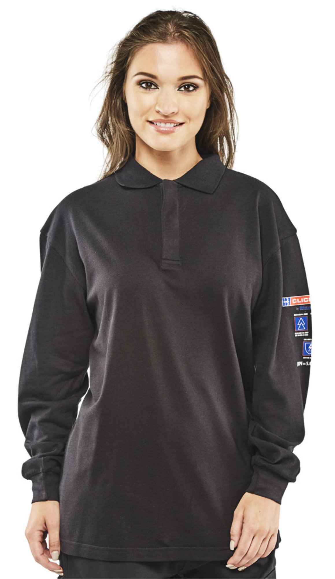 Flame Retardant, Anti-Static, ARC long sleeved polo shirt. 210gsm 60/40 Modacrylic/cotton blend Pique fabric. Inherently flame retardant fabric. FR properties will not diminish with repeated laundering. For industrial workers exposed to heat. Not suitable for fire fighters. 3 Button placket. Ribbed cuffs. Robust yet soft and comfortable to wear. EN ISO 13688:2013 – General requirements for protective clothing EN 1149-3:2004 – Anti Static – Test methods for measurements of charge decay EN 1149-5:2008 – Anti Static – Material performance and design requirements EN ISO 11612:2015 (A1 A2 B1 C1) – Protection against heat and flame ARC FLASH IEC 61482-2:2009 – Performance requirements and design requirements EN 61482-1-2:2007 (Class 1 = 4kA) – Box Arc testing EN 61482-1-1:2009 (EBT50 = 5.0 Cal/cm2) – Open Arc testing, Each garment style is independantly tested to both box and open ARC standards. Click ARC production is covered by article 11B certification.