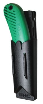 The UKH-423 Plastic Swivel Holster helps employees retain cutters while increasing productivity and safety The holster’s innovative design acts as an additional safety measure following each use The unique swivel design rotates the holster for the most comfortable positions on the user’s hip while sitting or standing Features, Durable Plastic Swivel Holster rotates 360 degrees, The UKH-423 Holster is specially designed for the S4, S4S and S5 Safety Cutters, Built in notch automatically retracts blade when cutter is holstered, Clips on to belt, pants or pocket, PBD-SP017B fits to the front for additional blade storage, CL-36 Coil Lanyard clips into holster (purchased separately)