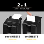 • SHRED A LARGE NUMBER OF DOCUMENTS AT ONCE – This hybrid paper shredder can shred 100 sheets automatically and manually shred 10 sheets of 70gsm paper per pass into 4 x 10mm mini-cut particles (Advanced Security DIN P-4), so you can be sure that your confidential documents have been shredded securely and is also around 3x more secure than standard cross-cut shredders
