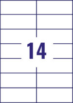 The label format is 105 x 42.3 mm with 14 labels per sheet and are ideal for all sorts of applications.