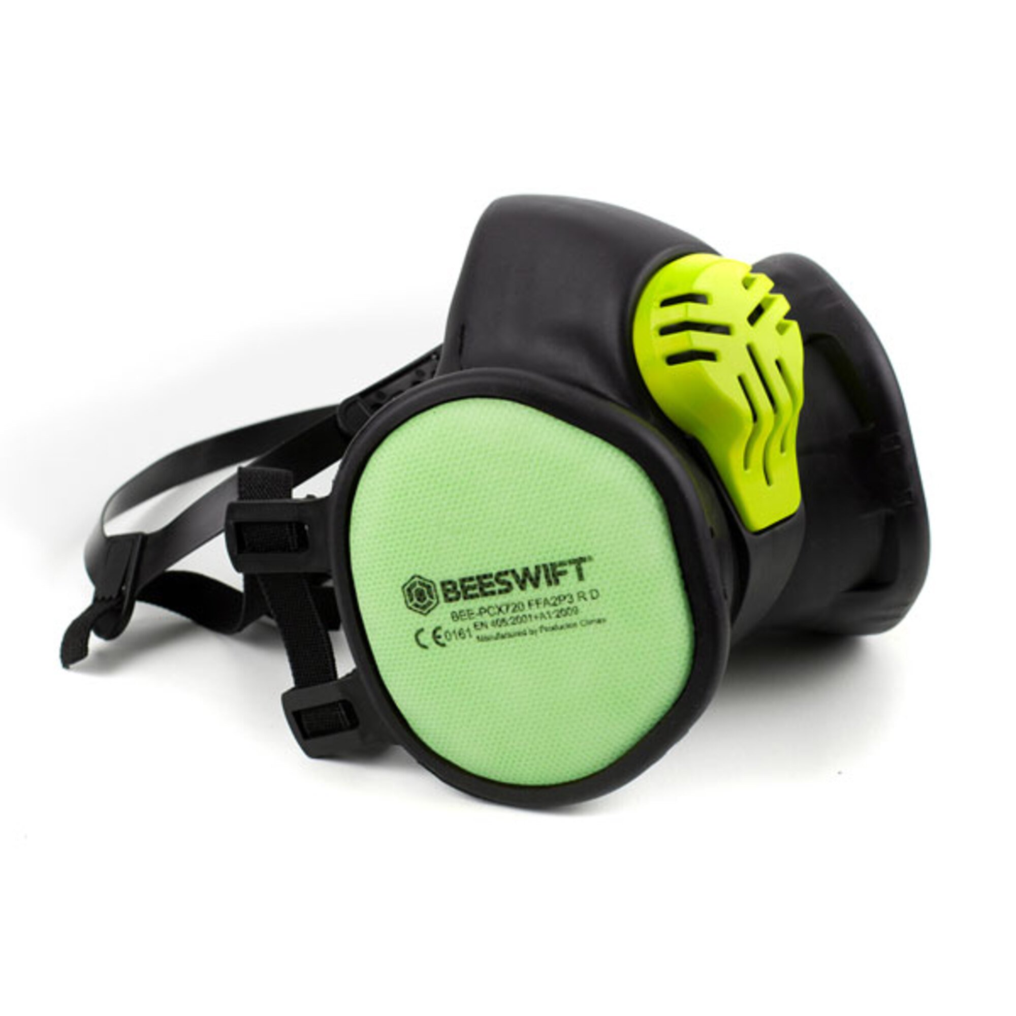 The Beeswift PCX-700 is a ready to use maintenance free half mask with integrated filters supplied in a resealable bag for hygienic storage and transportation Available in three versions offering differing levels of respiratory protection in accordance with EN 405:2001+A1:2009, Half mask body, The lightweight facial body is made of hypoallergenic thermoplastic The design and flexible material provide a highly efficient close-fitting seal, The main body houses two non-replaceable filters Their position offers a wide visual field of view and are ergonomically designed to be compatible with eyewear and hearing protection , Exhalation valve, For optimal exhalation there is a large diameter valve, allowing for excellent breathing comfort The Exhalation valve also allows the wearer to stay cool and reduces moisture build up within the mask , Fastening harness, Thanks to its easylock system the neck and head strap can be easily adjusted to the appropriate length providing the user with maximum comfort , Service Life, Once removed from its original packaging, the mask should be replaced every six months at the most Replace the mask if it retains any characteristic of the contaminant (smell, taste, irritation) or an increase in resistance to breathing is observed Make sure you leave the contaminated area first before changing your mask for a new one, FFA2P3 RD, R: Reusable mask, D: Dolomite clogging test passed, Nominal factor protection (NPF): 33 TLV, P3 -Protection against particles, A1/A2- Protection against organic vapours, solvents with a boiling point over 65‚º C , ABEK1- protection against inorganic gases and vapours, organic gases and vapours with a boiling point over 65‚ºC, sulphur dioxide and other acid gases and vapours and ammonia and ammonia derivatives ,