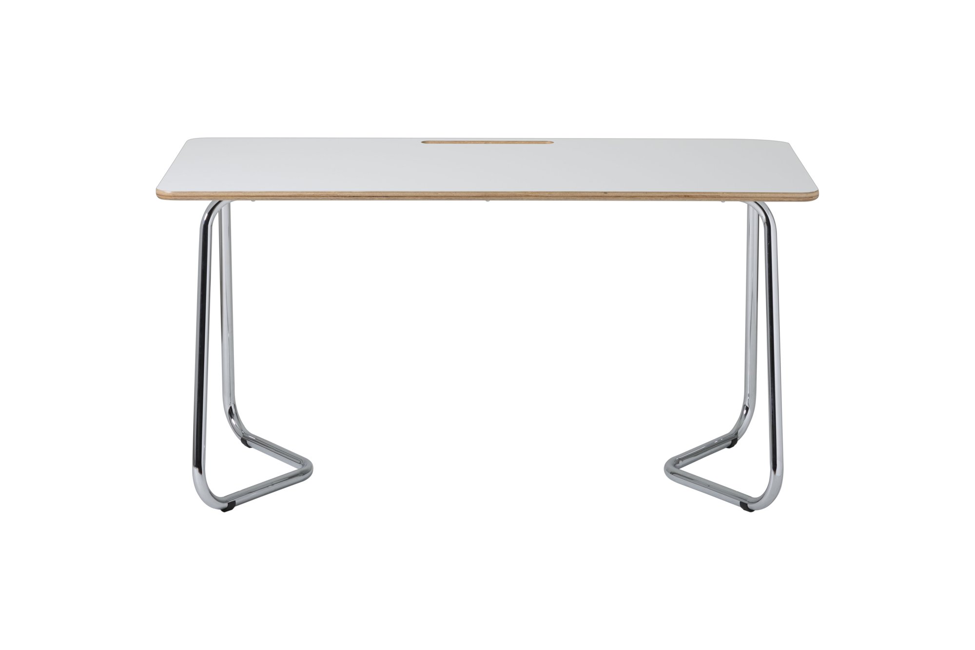 • Table top with groove for cable management purposes and also conferring beauty in the contrast between the laminated wood and high gloss white surface