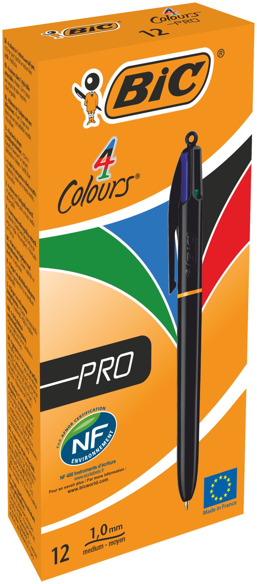 BIC 4 Colours Black Barrel Pro Ball Pen Pack of 12