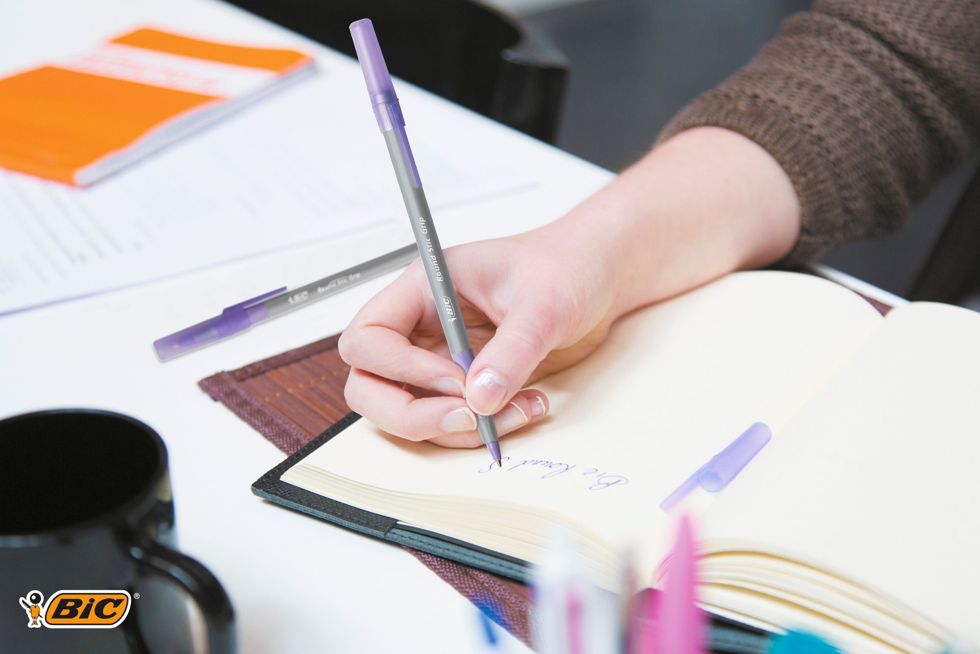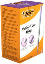 BIC Round Stic Grip ball pen has a lightweight barrel, making it easy and comfortable to write with and a rubber grip for great handling and comfort. The purple is great for peer to peer marking or making amendments to any work. The Round Stic Grip pen has purple ink and a 0.32mm line width it is ideal for children and adults alike. With colour coded grip and end cap this smart pen is a perfect fit for any occasion, it delivers a reliable writing performance whether you are at school, home or the office.