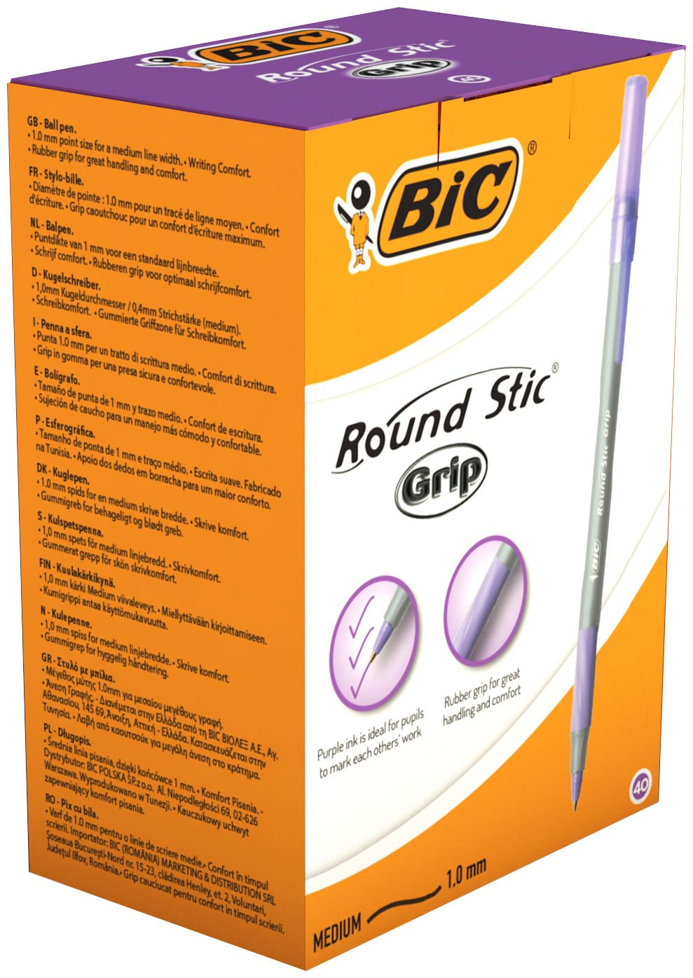 BIC Round Stic Grip Purple Ballpoint Pen Pack of 40