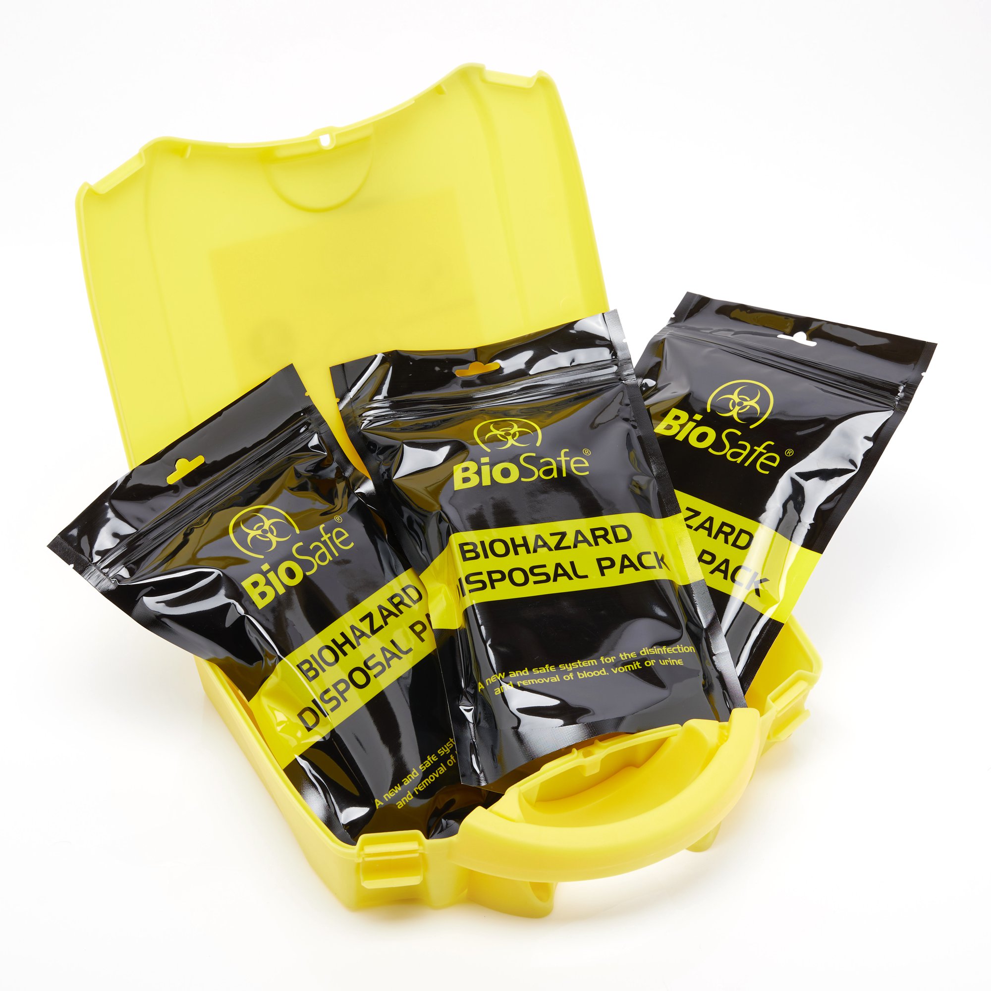 BioSafe Body Fluid Spill Kits contain all equipment necessary for the safe and hygienic clean-up and disposal of body fluid spills. Case contains three single application packs.