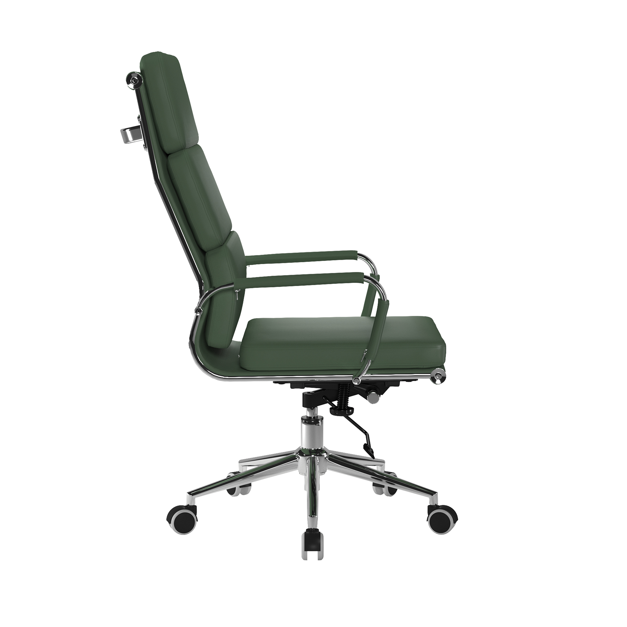 This high back designer executive chair is upholstered in plush bonded leather and is suitable for both a workplace or home office environment. Offering detailed stitching with a bold triple panel back cushion design, a strong single piece chrome frame with complementing integral chrome arms with bonded leather sleeves, it has a gaslift for easy seat height adjustment, and a mechanism which allows the user to fully recline in the chair and is adjustable for individual – bodyweight (tension control) which can be locked in the upright position. It is finished with a polished chrome spider base with twin wheel hooded castors.