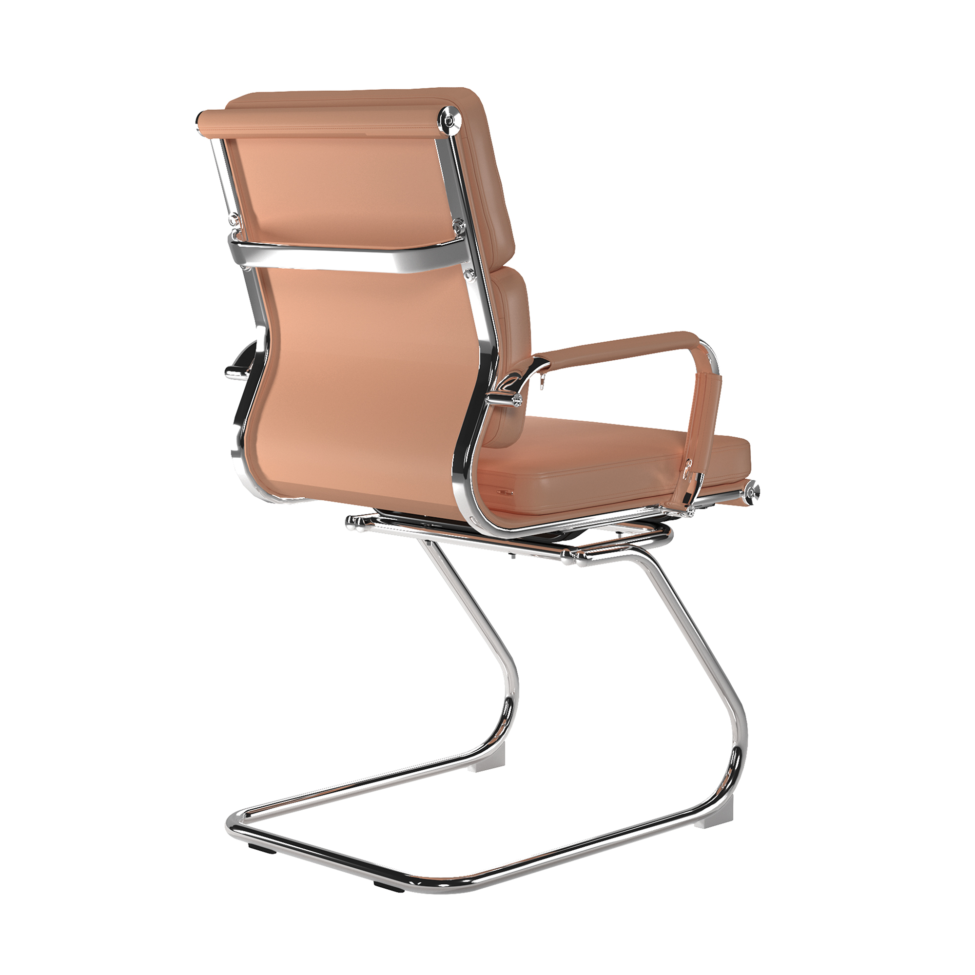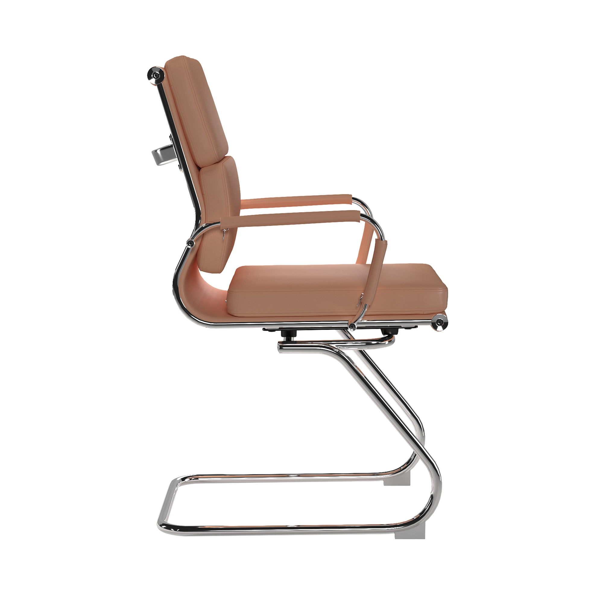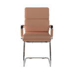 This medium back designer visitor chair is upholstered in plush bonded leather and is suitable for both a workplace or home office environment. Offering detailed stitching with a bold twin panel back cushion design, it features a strong single piece chrome cantilever frame and is finished with complementing integral chrome arms with bonded leather sleeves.