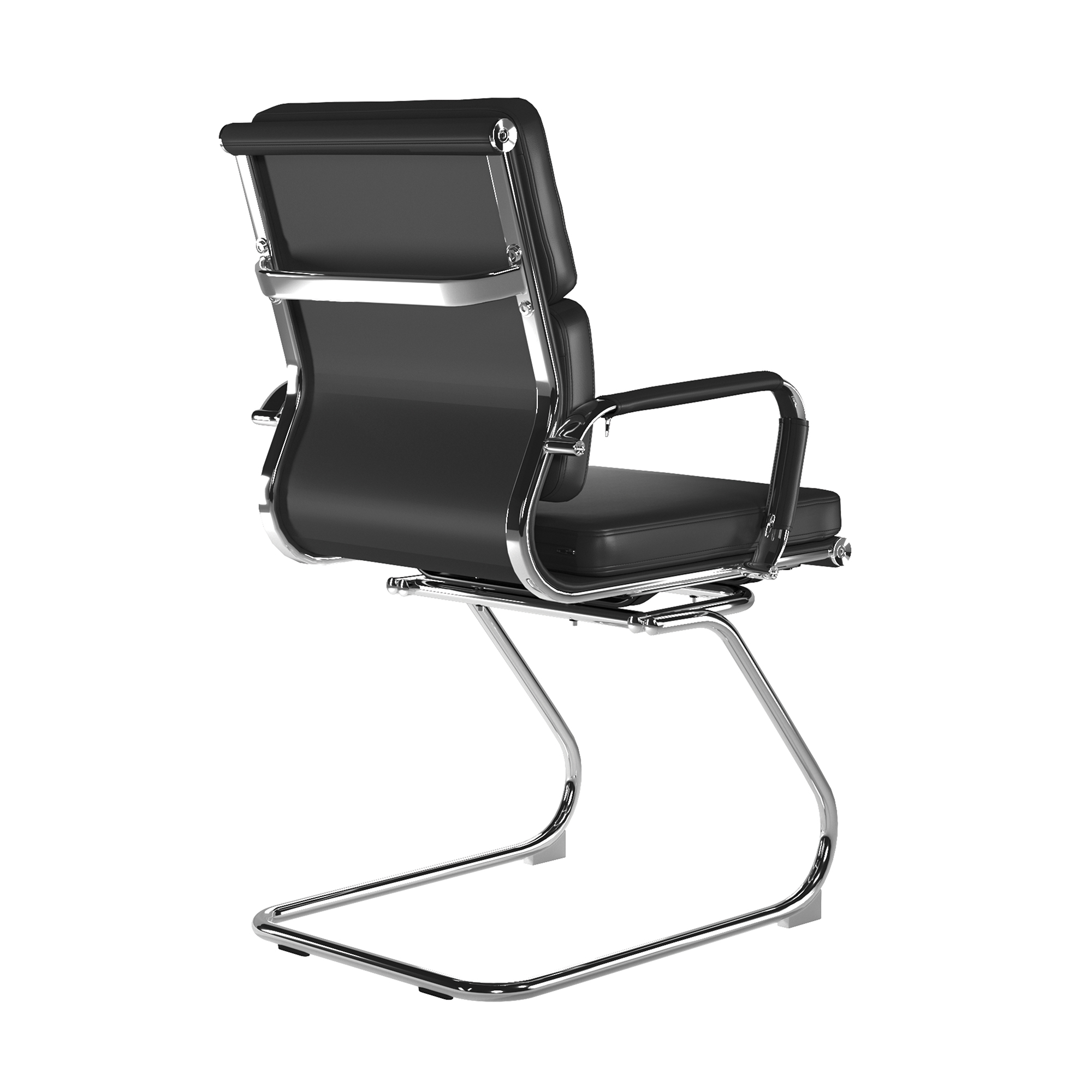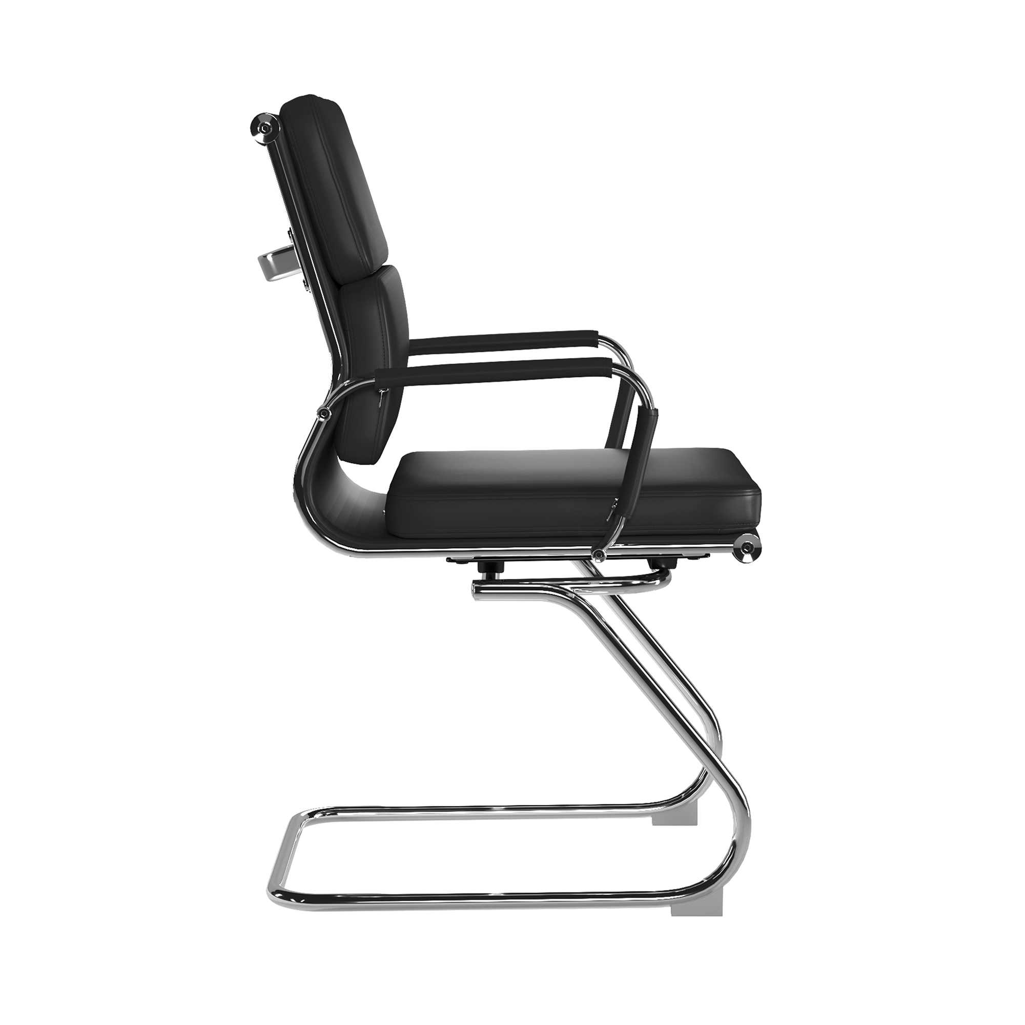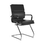This medium back designer visitor chair is upholstered in plush bonded leather and is suitable for both a workplace or home office environment. Offering detailed stitching with a bold twin panel back cushion design, it features a strong single piece chrome cantilever frame and is finished with complementing integral chrome arms with bonded leather sleeves.