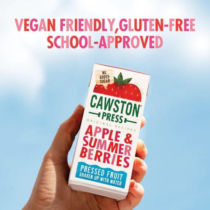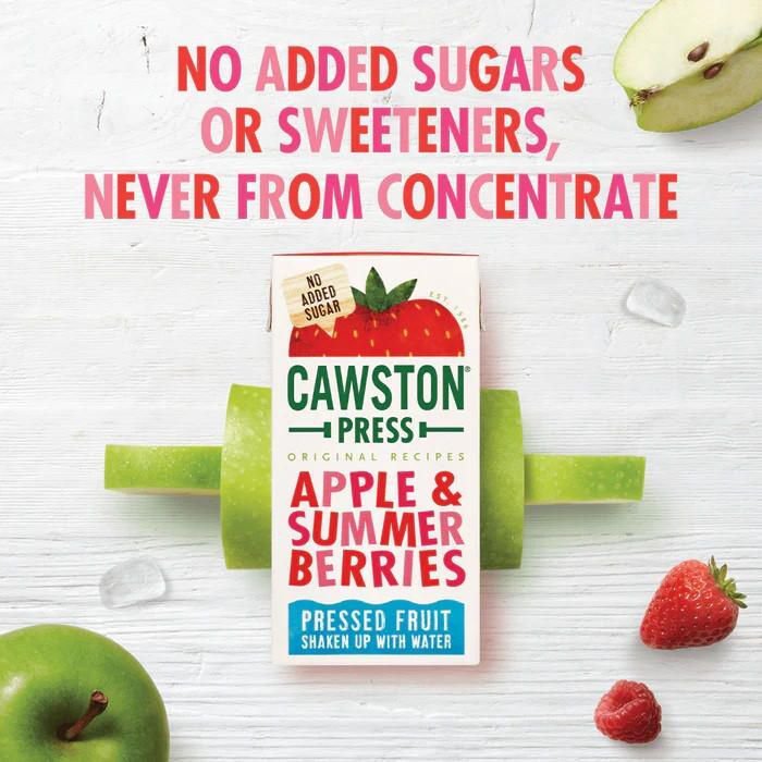 • Simply made using pressed apple juice (Braeburn, Gala, Jonagold and Golden Delicious), strawberry and raspberry purees, and water.