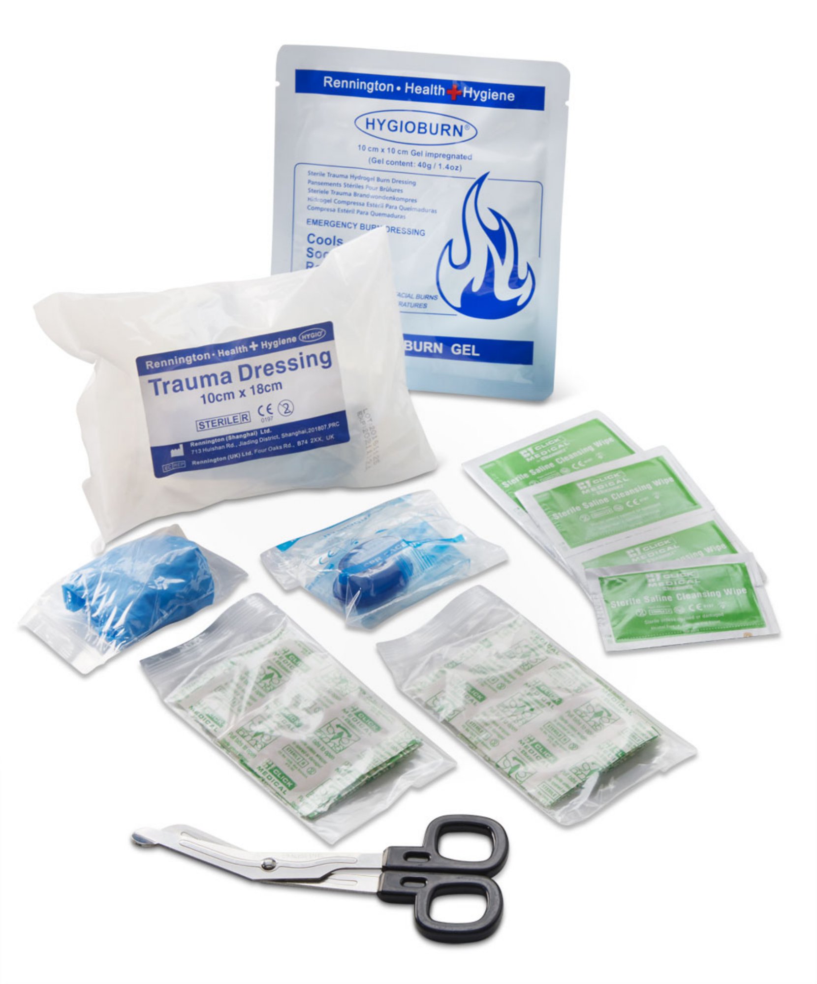 All our travel kits are supplied in the option of our Feva range of cases, which are lightweight, durable, but more aesthetically pleasing than standard first aid bags and boxes. Ideal for the glove compartment or boot space. Kit Contains:, 1 x Guidance note, 1 x Burn relief dressing 10x10cm, 10 x Waterproof assorted plasters, 5 x Sterile cleansing Wipes, 1 x Pair nitrile disposable gloves, 1 x Mouth-to-mouth resuscitation device with valve, 1 x Universal Shears small, 1 x Trauma Dressing 10x18cm