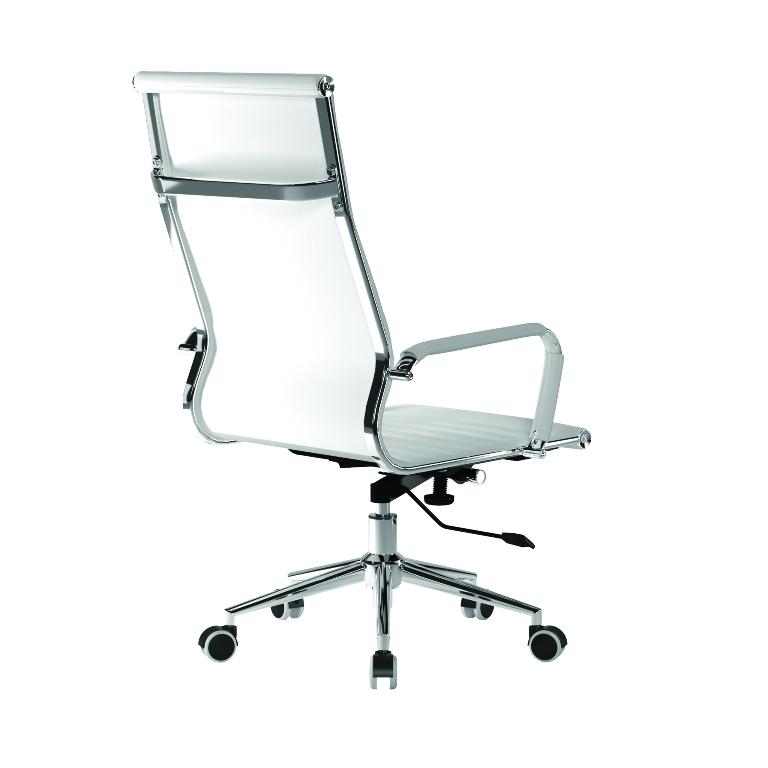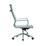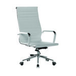 This high back contemporary classic designer executive chair is upholstered in plush bonded leather and is suitable for both a workplace or home office environment. Offering detailed stitching design, a strong single piece chrome frame with rolled top and seat base with complementing integral chrome arms with bonded leather sleeves, it has a heavy duty gas lift 154 kilos (25 stone) for easy seat height adjustment, and a mechanism which allows the user to fully recline in the chair and is adjustable for individual – bodyweight (tension control) which can be locked in the upright position. It is finished with a polished chrome spider base with twin wheel hooded castors.