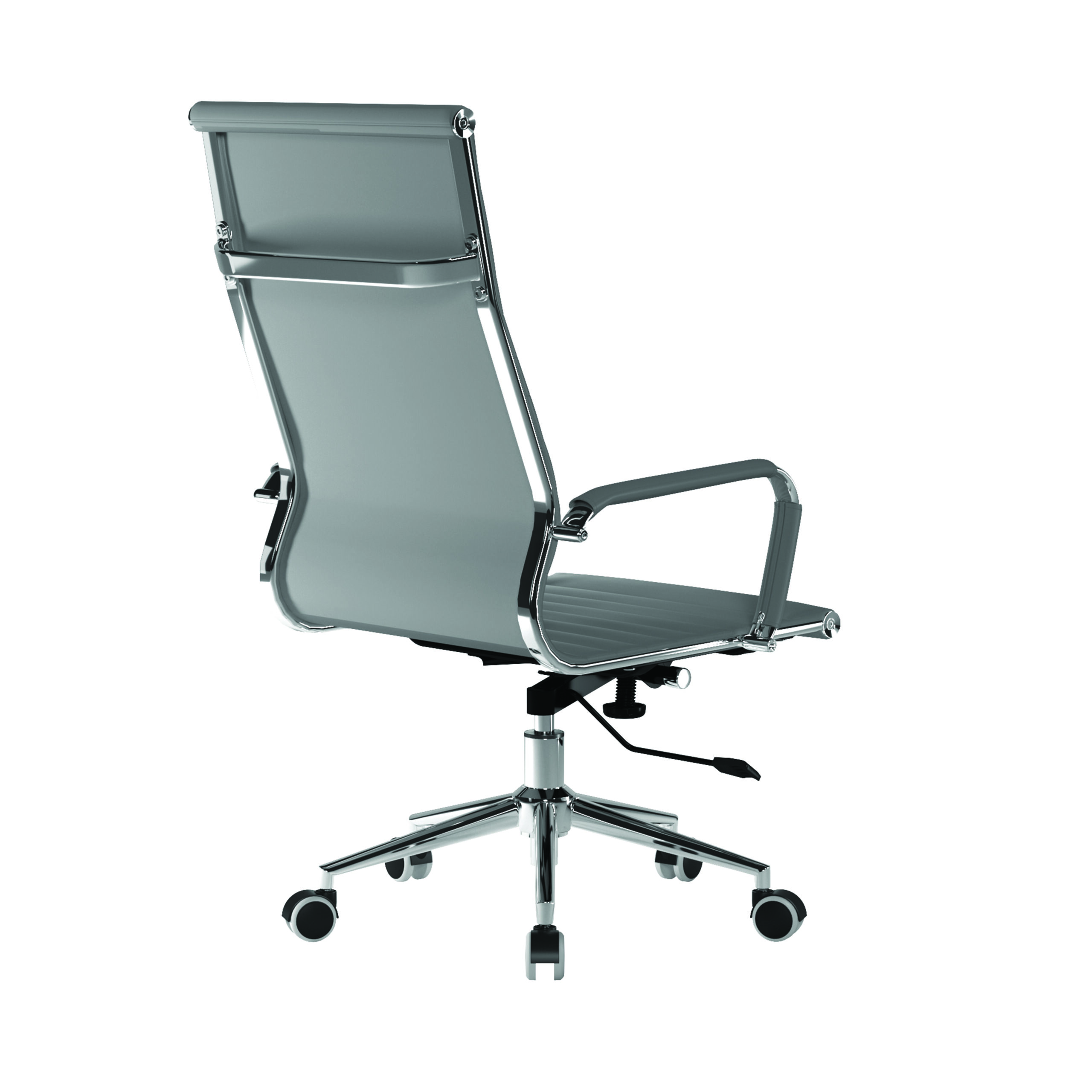 This high back contemporary classic designer executive chair is upholstered in plush bonded leather and is suitable for both a workplace or home office environment. Offering detailed stitching design, a strong single piece chrome frame with rolled top and seat base with complementing integral chrome arms with bonded leather sleeves, it has a heavy duty gas lift 154 kilos (25 stone) for easy seat height adjustment, and a mechanism which allows the user to fully recline in the chair and is adjustable for individual – bodyweight (tension control) which can be locked in the upright position. It is finished with a polished chrome spider base with twin wheel hooded castors.