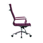 This high back contemporary classic designer executive chair is upholstered in plush bonded leather and is suitable for both a workplace or home office environment. Offering detailed stitching design, a strong single piece chrome frame with rolled top and seat base with complementing integral chrome arms with bonded leather sleeves, it has a heavy duty gas lift 154 kilos (25 stone) for easy seat height adjustment, and a mechanism which allows the user to fully recline in the chair and is adjustable for individual – bodyweight (tension control) which can be locked in the upright position. It is finished with a polished chrome spider base with twin wheel hooded castors.
