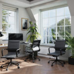 This medium back contemporary classic designer executive chair is upholstered in plush bonded leather and is suitable for both a workplace or home office environment. Offering detailed stitching design, a strong single piece Black frame with rolled top and seat base with complementing integral Black arms with bonded leather sleeves, it has a heavy duty gas lift 154 kilos (25 stone) for easy seat height adjustment, and a mechanism which allows the user to fully recline in the chair and is adjustable for individual – bodyweight (tension control) which can be locked in the upright position. It is finished with a polished Black spider base with twin wheel hooded castors.
