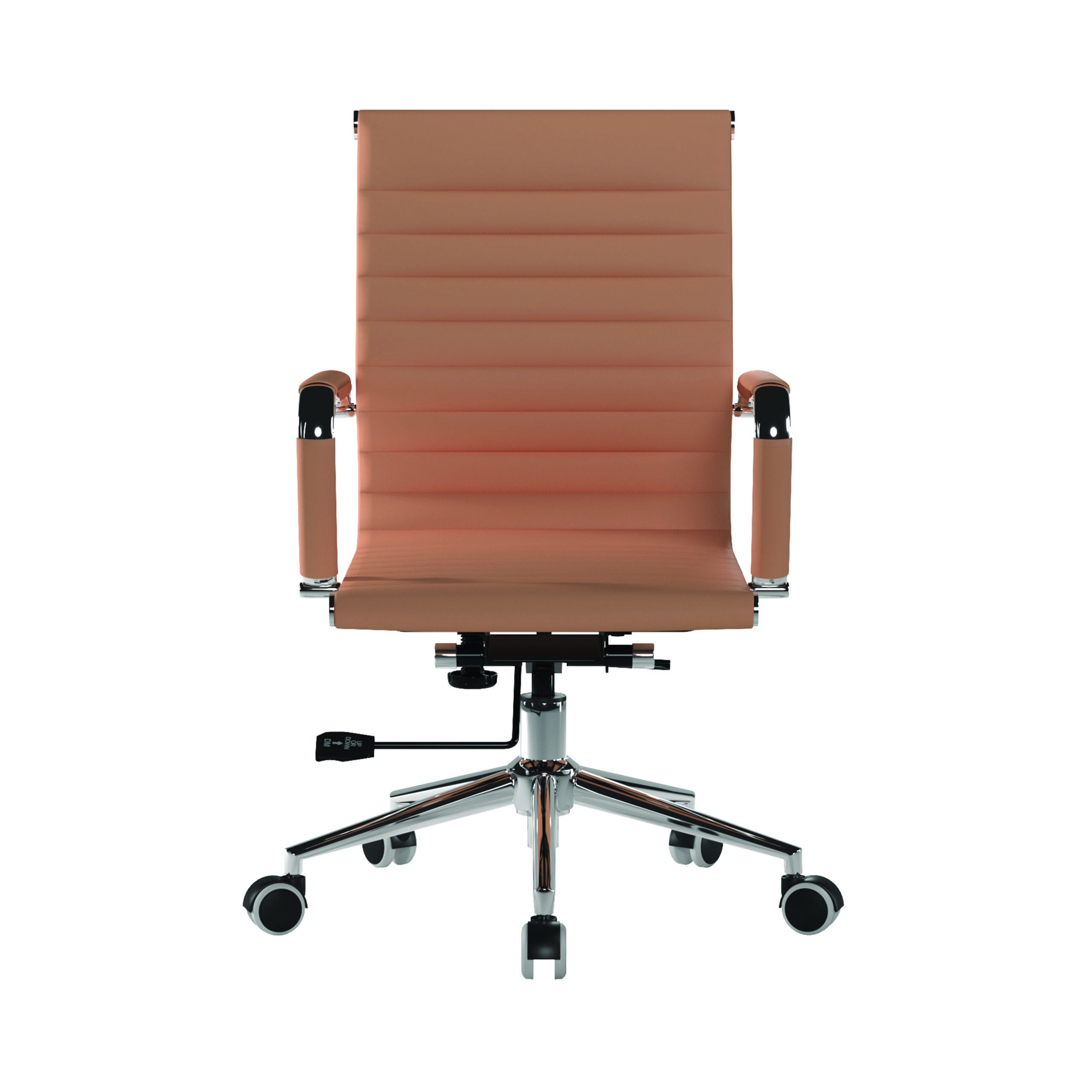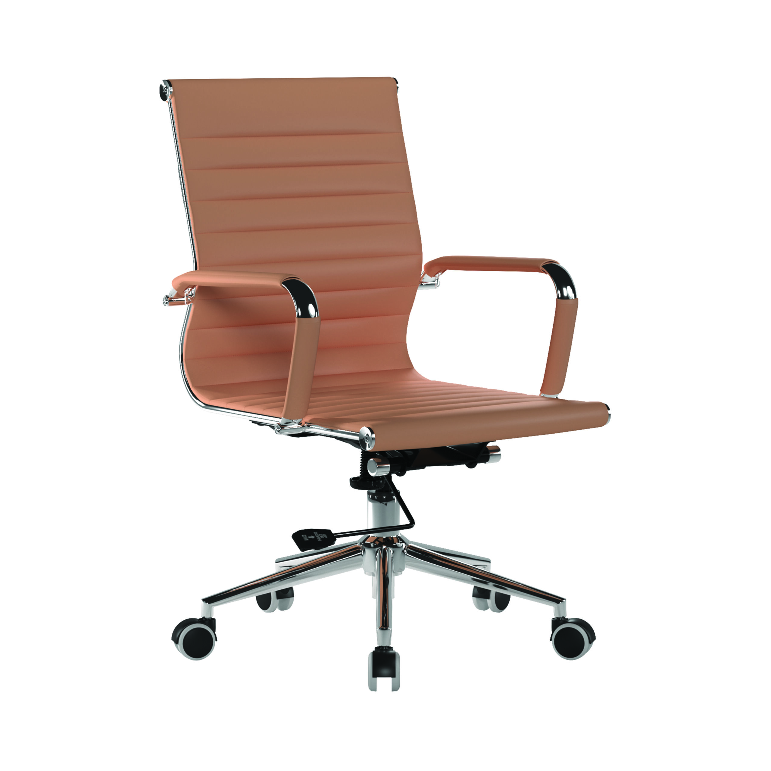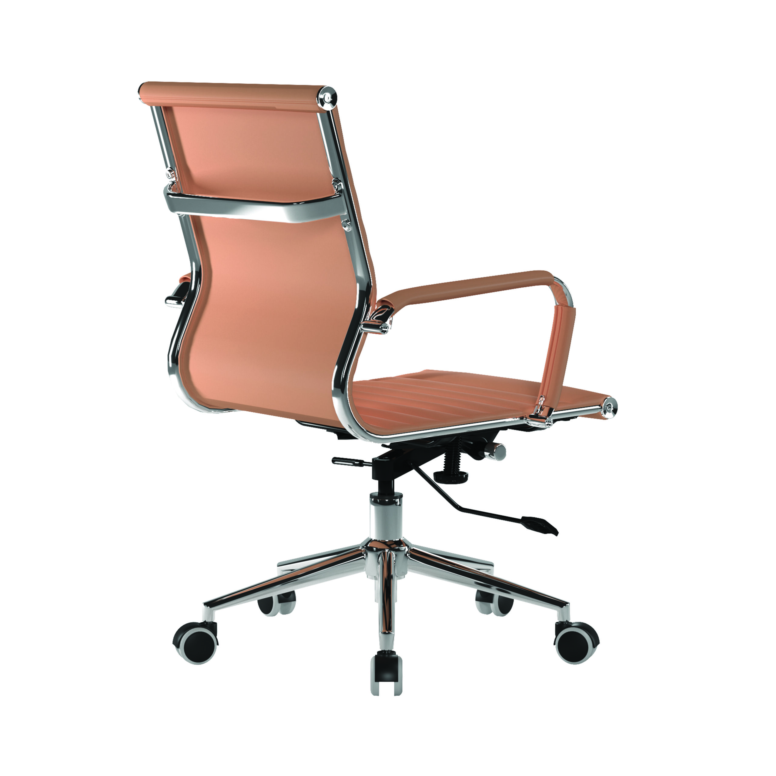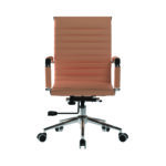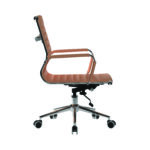 This medium back contemporary classic designer executive chair is upholstered in plush bonded leather and is suitable for both a workplace or home office environment. Offering detailed stitching design, a strong single piece chrome frame with rolled top and seat base with complementing integral chrome arms with bonded leather sleeves, it has a heavy duty gas lift 154 kilos (25 stone) for easy seat height adjustment, and a mechanism which allows the user to fully recline in the chair and is adjustable for individual – bodyweight (tension control) which can be locked in the upright position. It is finished with a polished chrome spider base with twin wheel hooded castors.