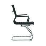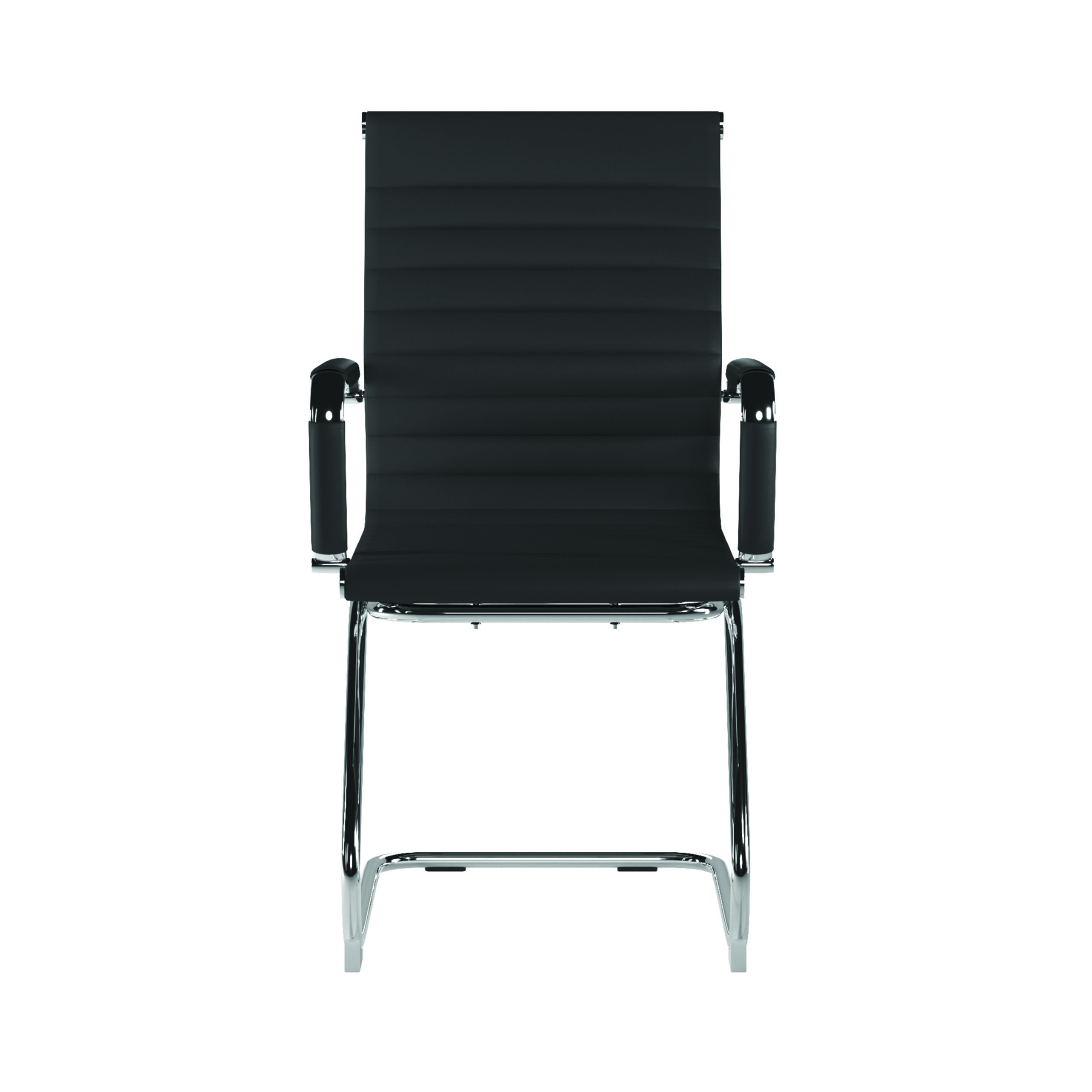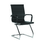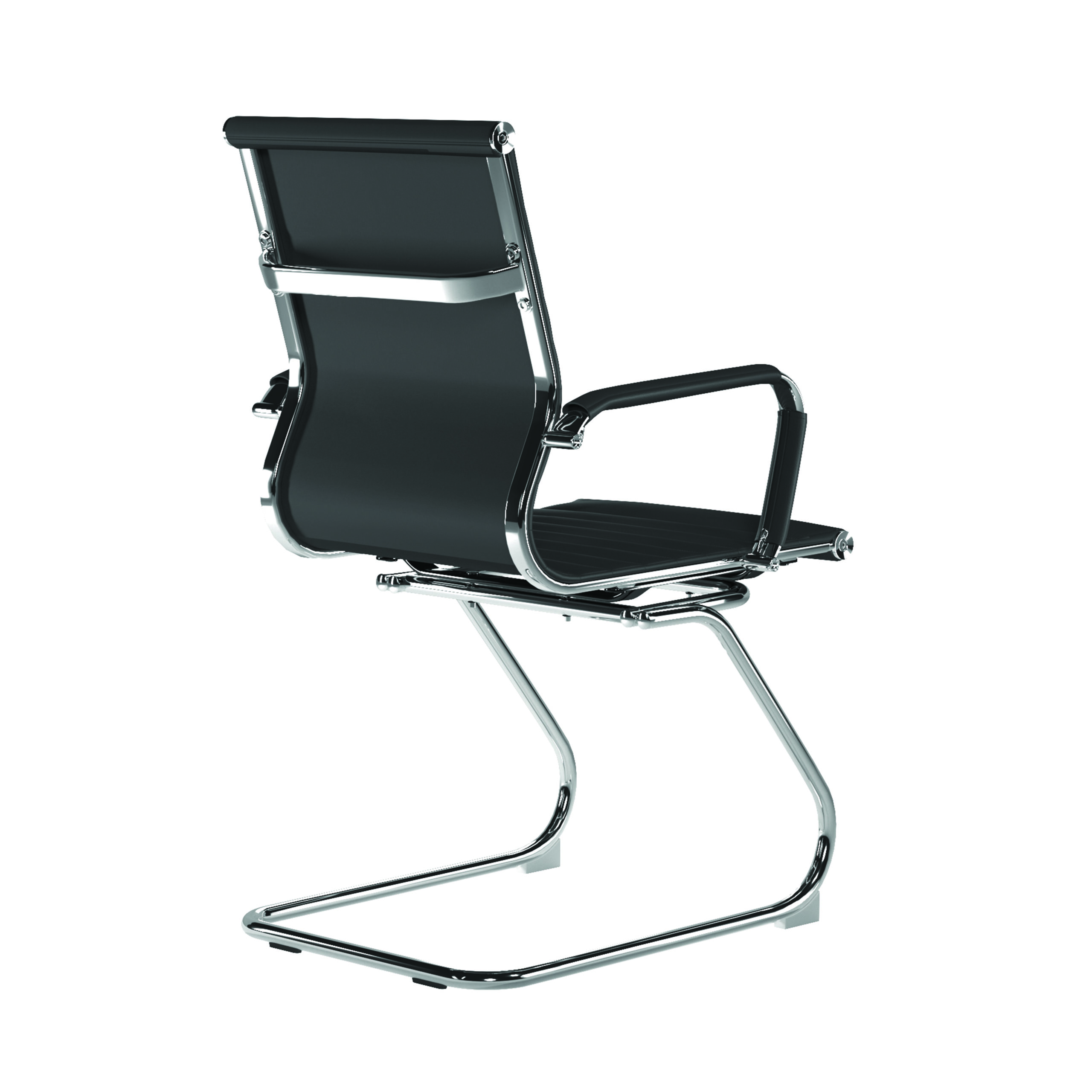 This medium back contemporary classic designer cantilever armchair offers detailed stitching design, a strong single piece chrome frame with rolled top and seat base upholstered in plush bonded leather with complementing integral chrome arms and matching bonded leather sleeves, and is suitable for both a workplace or home office environment.
