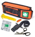 – which when pulled brings the contents of the bag to the top of the bag enabling easy access to the contents of the kit. The kit comes complete with: 1 x pair of 17.5cm Tuffcut clothing shears 1 x Rescue Whistle 1 x PHC cutter for safely releasing webbing or clothing 1 x SOF Military Tourniquet (CAT Tourniquet available as an option) Finally