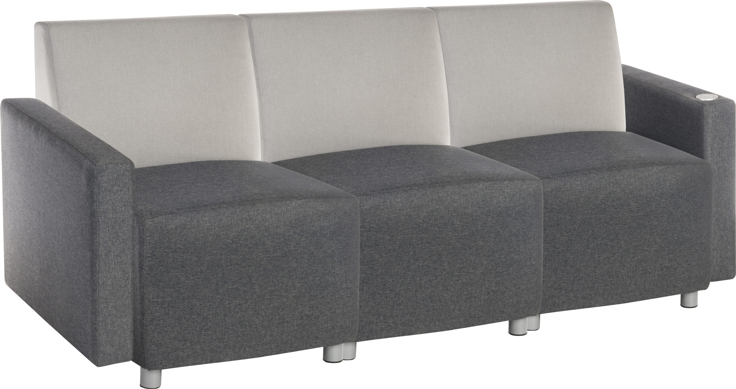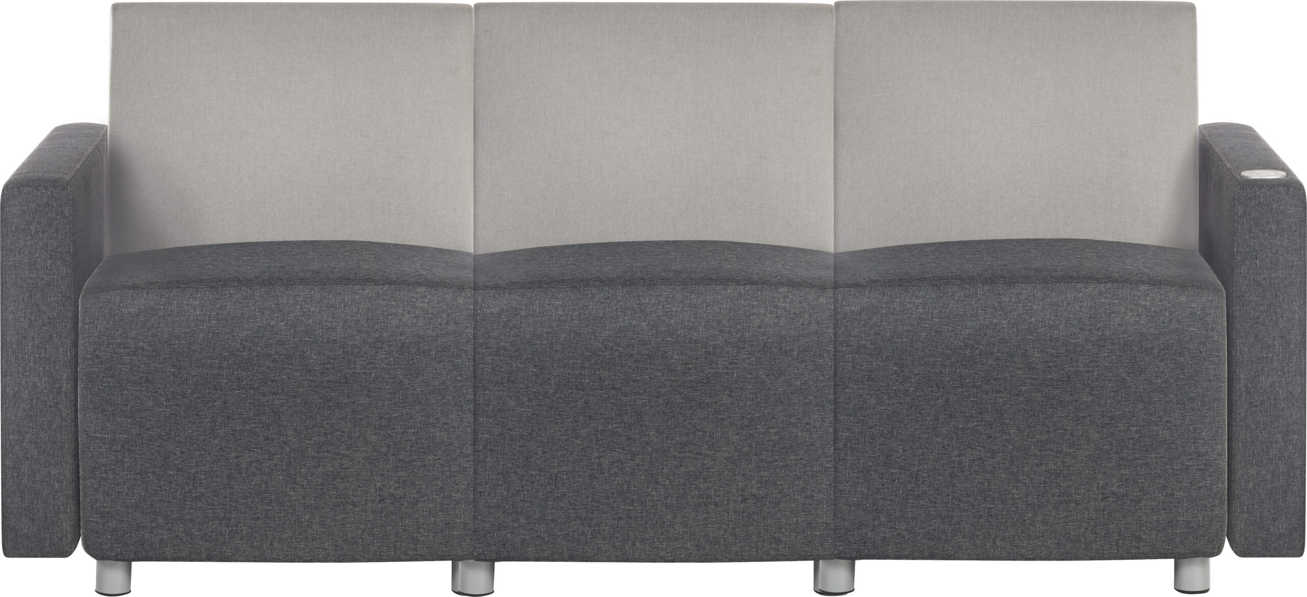 The Teknik Office Cube Modular Armchair is our elegant and uncomplicated reception armchair in two tone neutral grey fabric with smart matching metal feet. It is has a comfortable cushioned dark grey seat and contrasting light grey padded backrest which is pleasing to look at and super for relaxing in . This chair base requires limited assembly and is fully configurable to suit your reception or waiting area, no matter what the size. It has the option to add arms either side, these arms can also include a discreet USB port if required, perfect for your visitors to charge their electrical devices in while they wait.