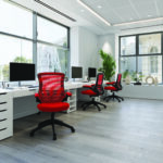 This high back mesh chair is a popular choice, with a reclining tilt mechanism that can be locked in the upright position and adjusted to suit the user’s body weight. It also has folding arms, an AIRFLOW mesh seat, posture contoured mesh back, and a stylish black shell with matching 5-star base. This chair offers both comfort and style for any purpose.