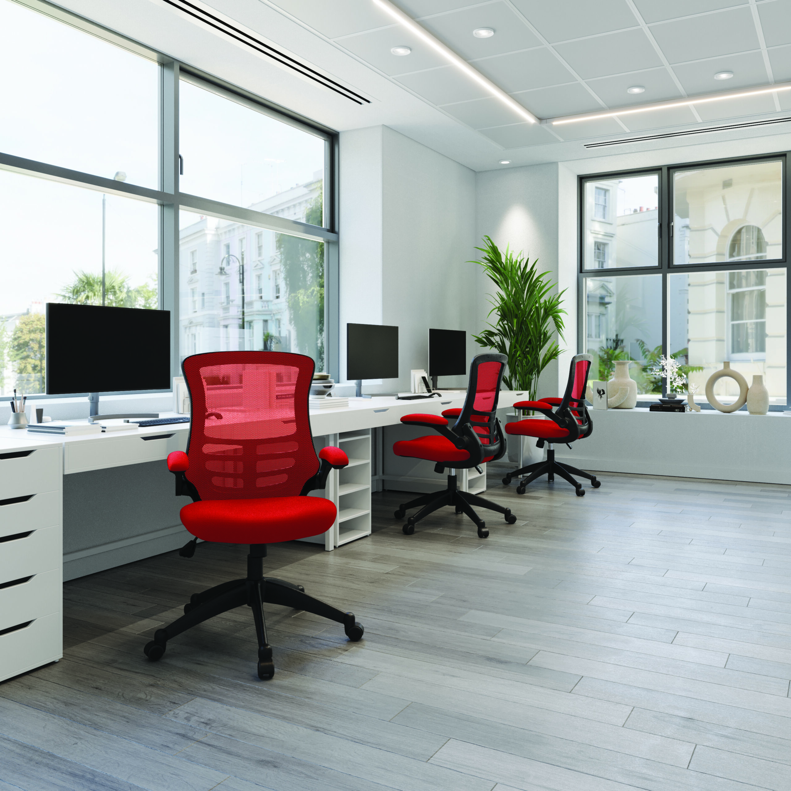 One of our most popular high back mesh chairs features a fully reclining tilt mechanism lockable in the upright position – adjustable to suit the individual’s bodyweight (tension control), folding arms, an AIRFLOW mesh seat, posture contoured mesh back and a stylish black shell with sturdy matching 5 star base. It will provide you with comfort and style for any desired purpose.