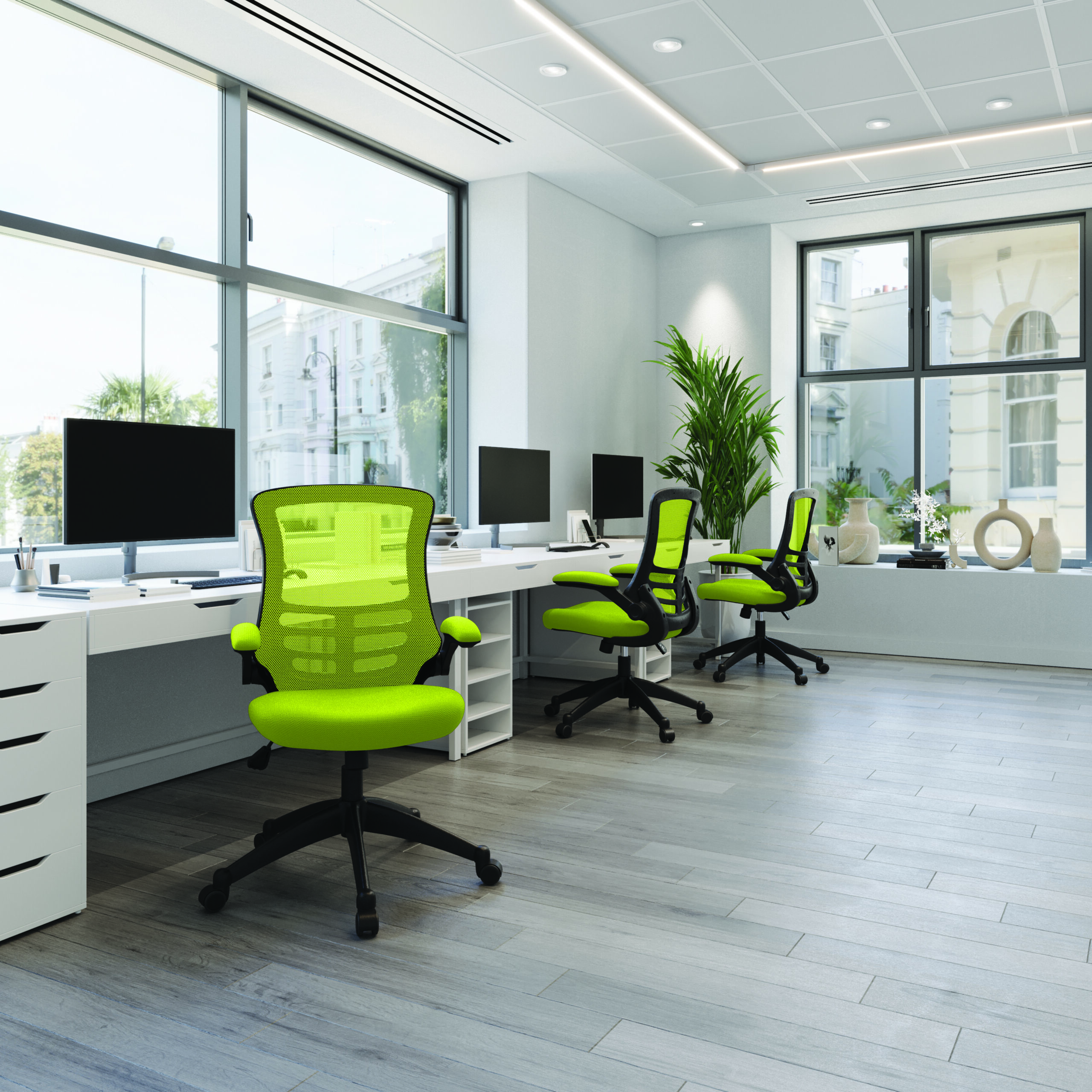 This high back mesh chair is a popular choice, with a reclining tilt mechanism that can be locked in the upright position and adjusted to suit the user’s body weight. It also has folding arms, an AIRFLOW mesh seat, posture contoured mesh back, and a stylish black shell with matching 5-star base. This chair offers both comfort and style for any purpose.