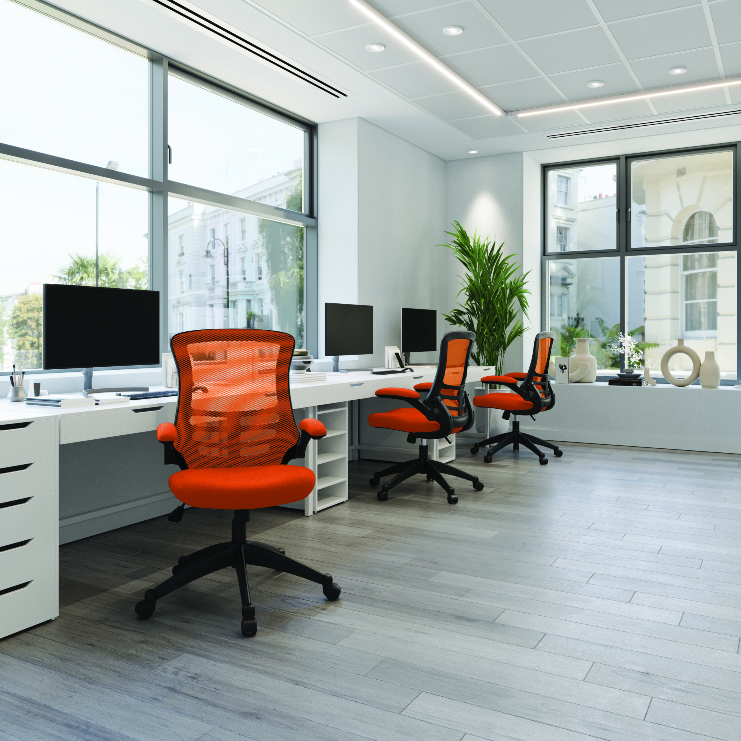 One of our most popular high back mesh chairs features a fully reclining tilt mechanism lockable in the upright position – adjustable to suit the individual’s bodyweight (tension control), folding arms, an AIRFLOW mesh seat, posture contoured mesh back and a stylish black shell with sturdy matching 5 star base. It will provide you with comfort and style for any desired purpose.