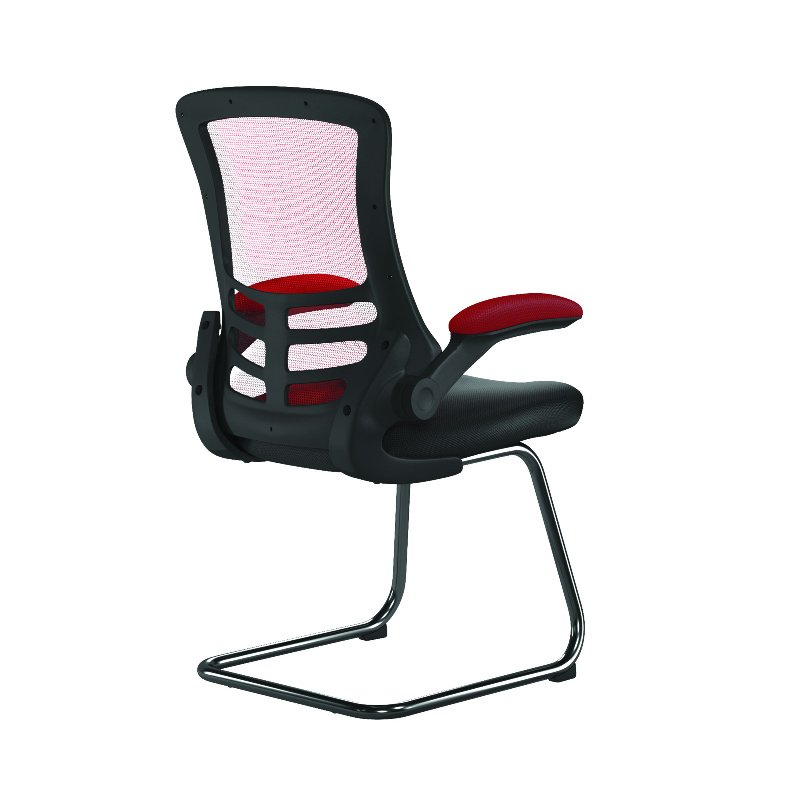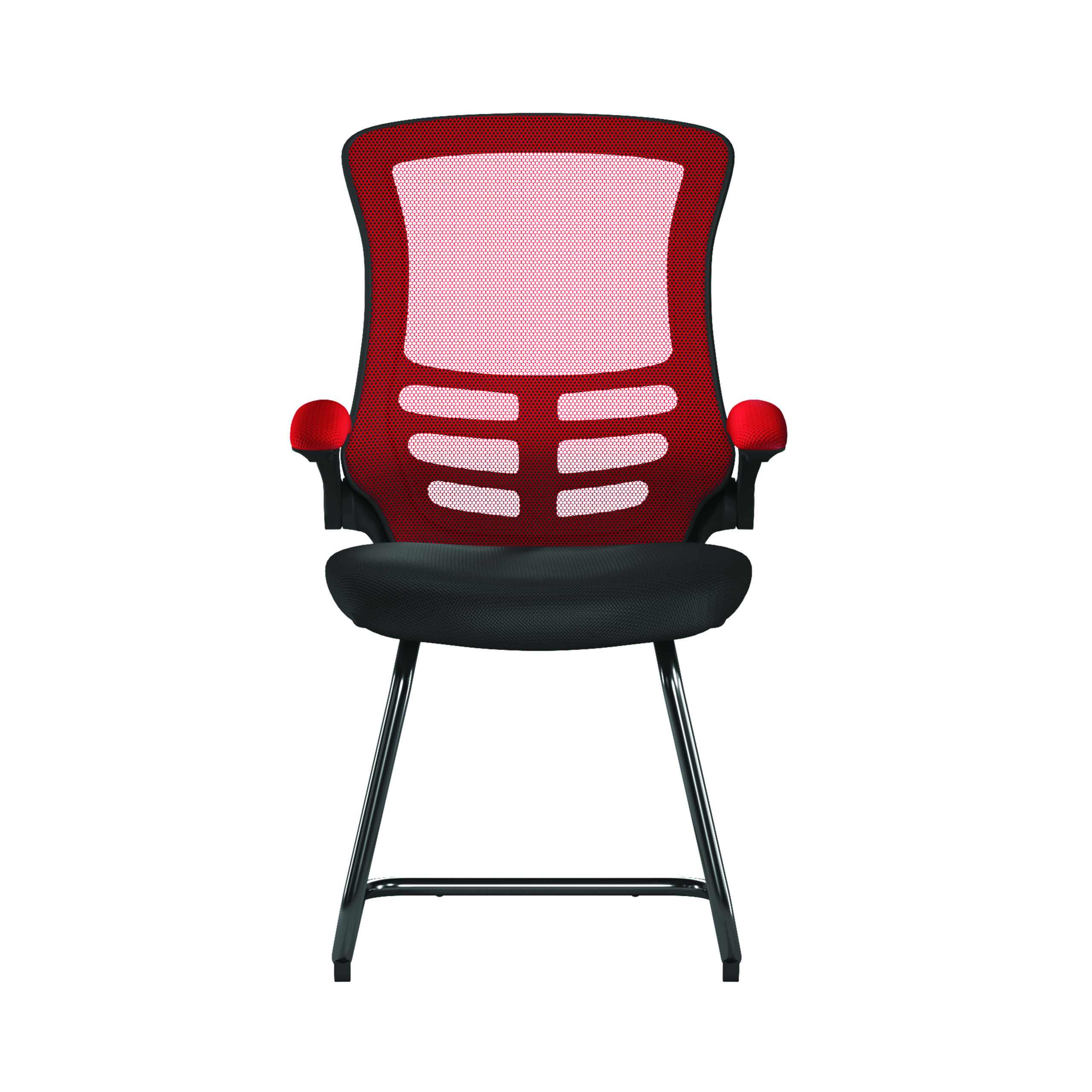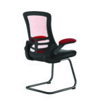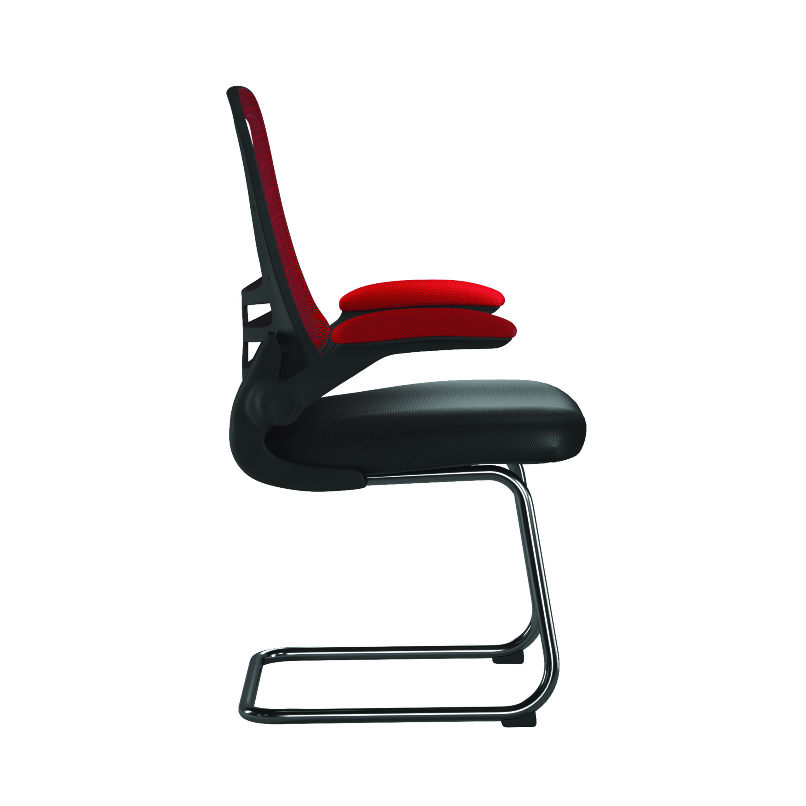 This contemporary designer visitor chair boasts folding arms, an AIRFLOW mesh seat, posture contoured mesh back with stylish black shell and a sturdy 35mm tubular black frame.