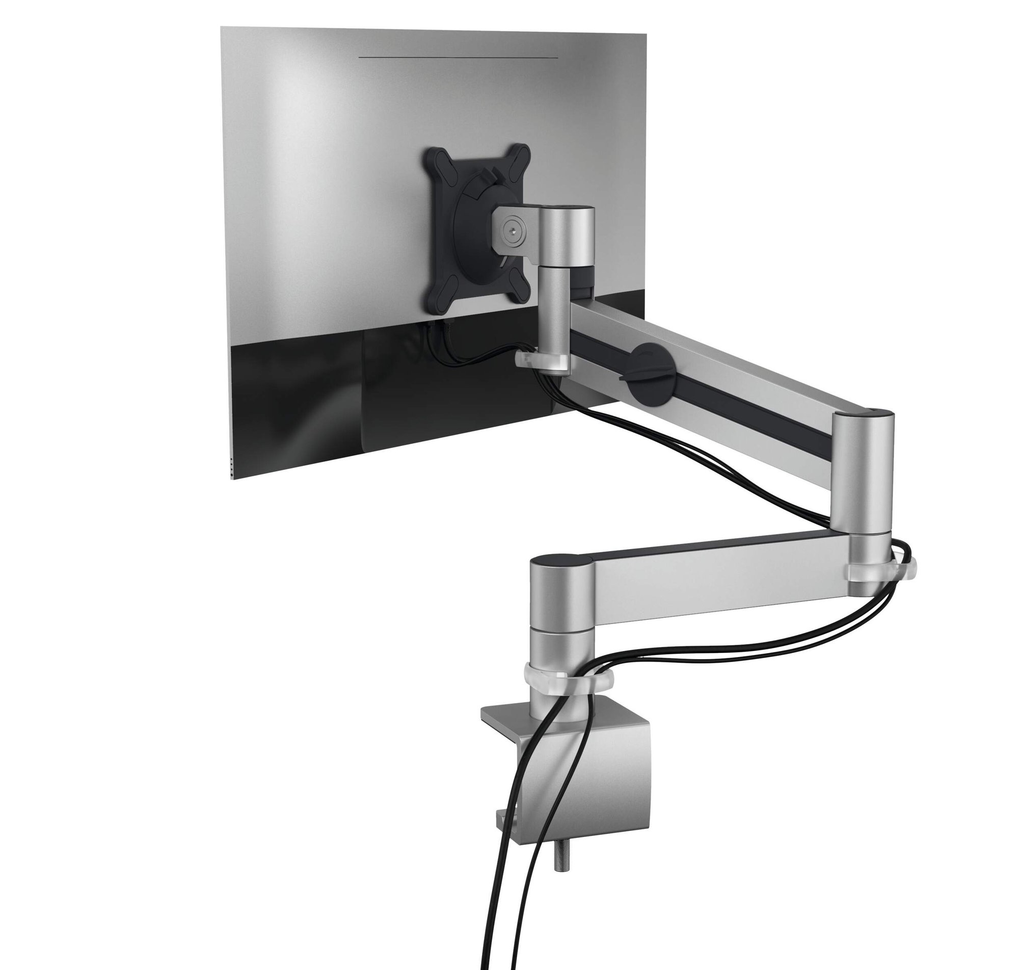 • CLEAN & SUSTAINABLE – Incl. 3 cable clamps for orderly cable routing – desk clamp provides more space on the desk – environmentally friendly in dependence to ISO 14021 – 100% recyclable, up to 60% from recycled materials