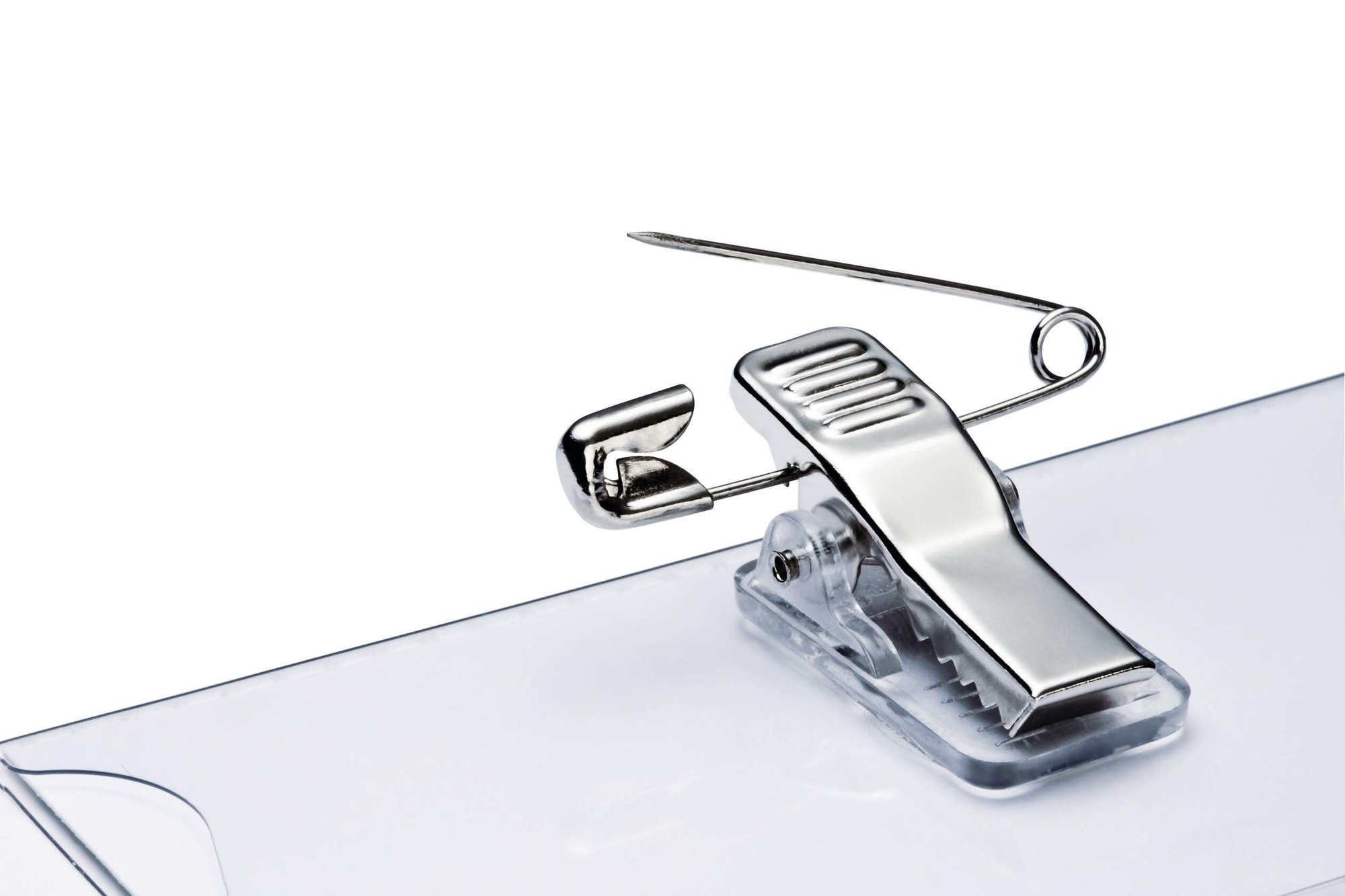 • COMBI CLIP – Our unique combi clip design features both a pin and clip fastener for secure attachment to various types of clothing