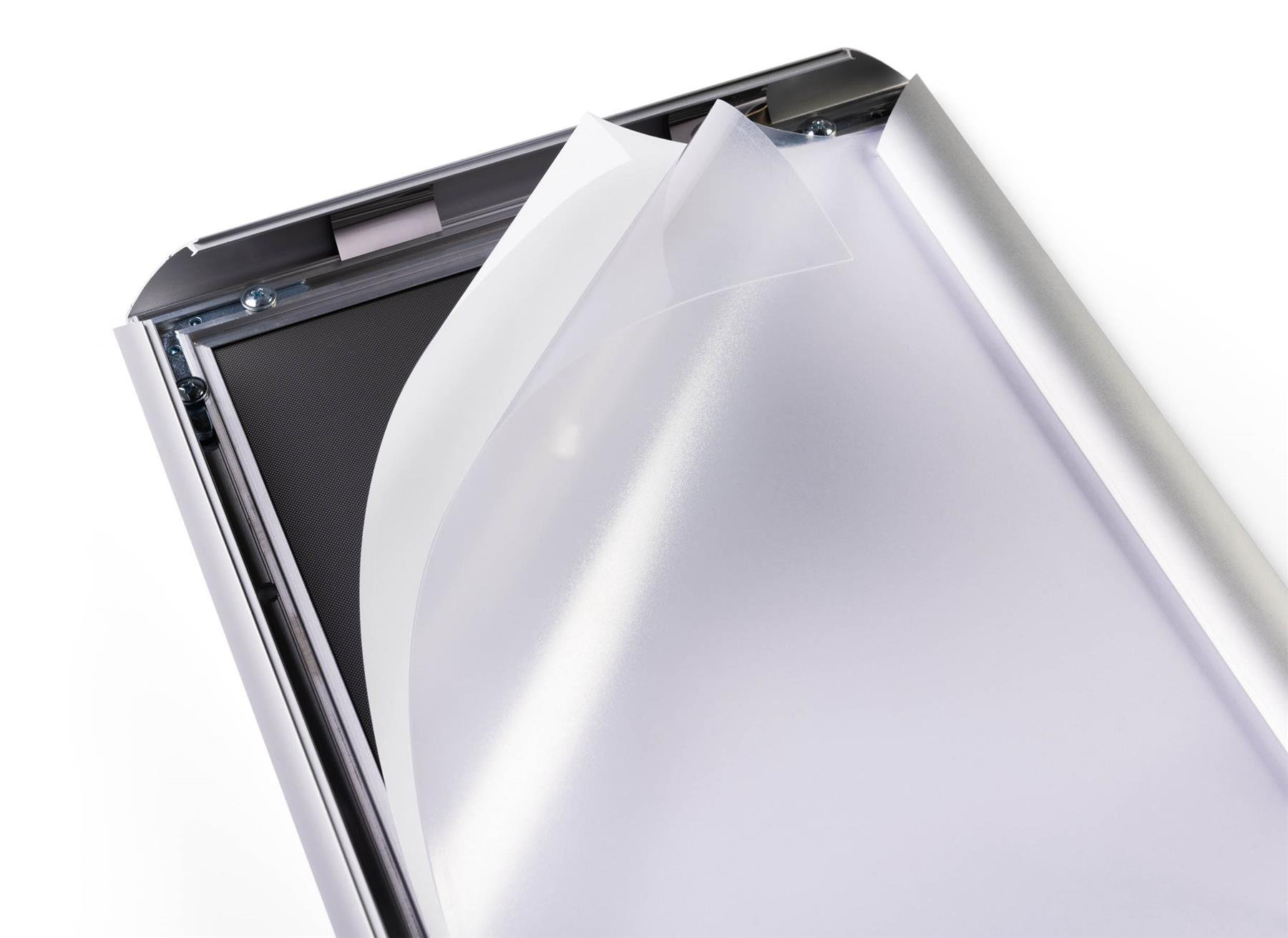 Robust anodised aluminium snap frames provide a premium signage solution. The folding frame enables quick and easy exchange of documents for fast changing signage.