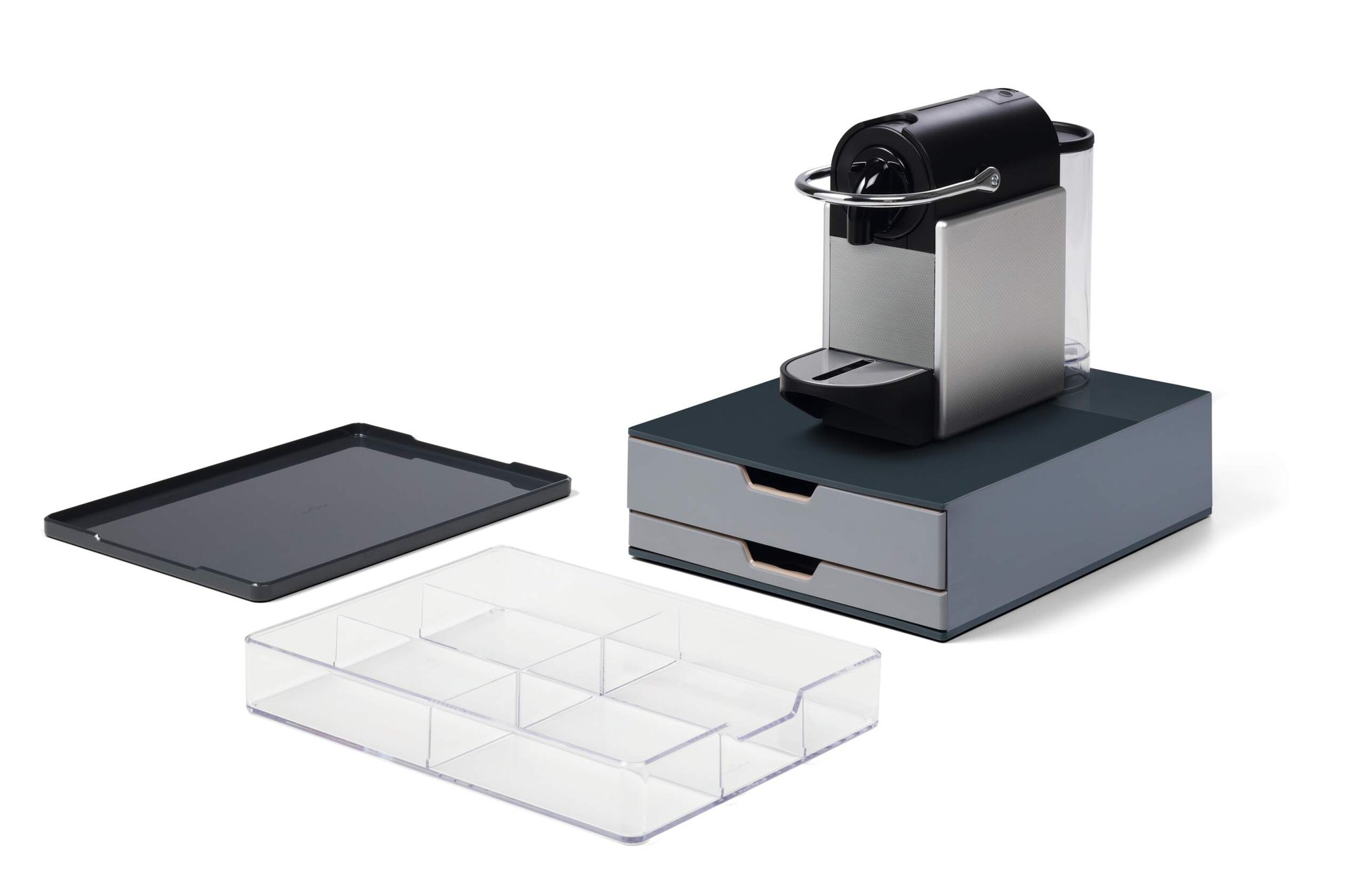 Durable COFFEE POINT boxes offer spacious, flexible and user-friendly storage and organisation. Perfect for common catering and office supplies such as coffee pods, tea bags, sugar sachets and stationery. Ideal for use in meeting rooms, reception and break-out areas with a secure GDPR-compliant cylinder lock on the top draw.