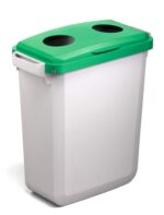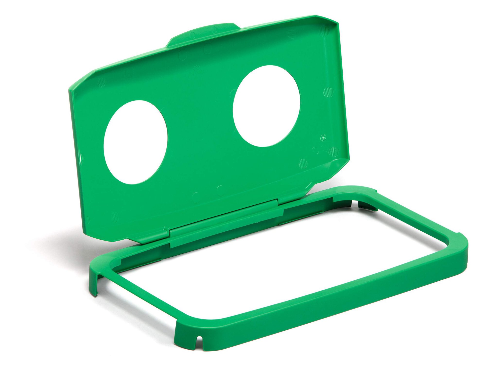 Ensure compliance with the UK’s latest waste separation regulations and streamline recycling with the DURABIN® 60L Hinged Bin Lid in Green, featuring two circular holes for the disposal of bottles and cans.