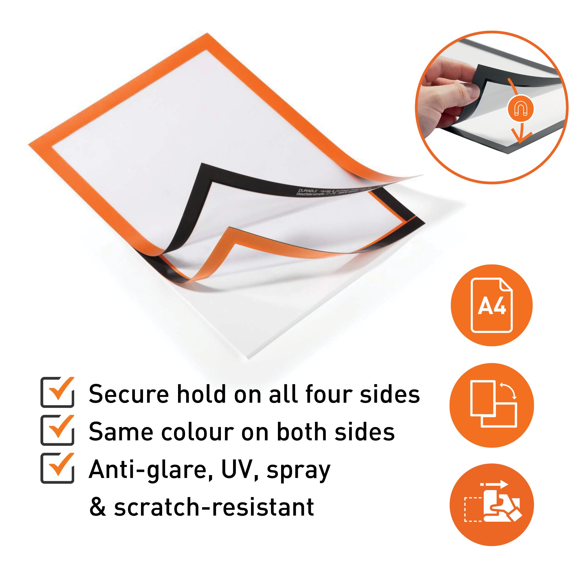• VERSATILE – At home in any environment. Featuring anti-glare, UV, spray & scratch-resistant materials DURAFRAME is the most versatile magnetic frame in the UK