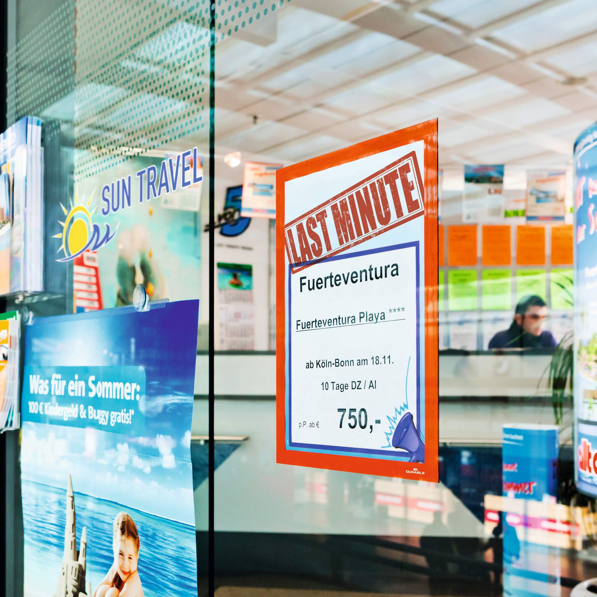 Great on Glass: UV Protection and identically coloured frame on both sides gives you a double sided signage solution