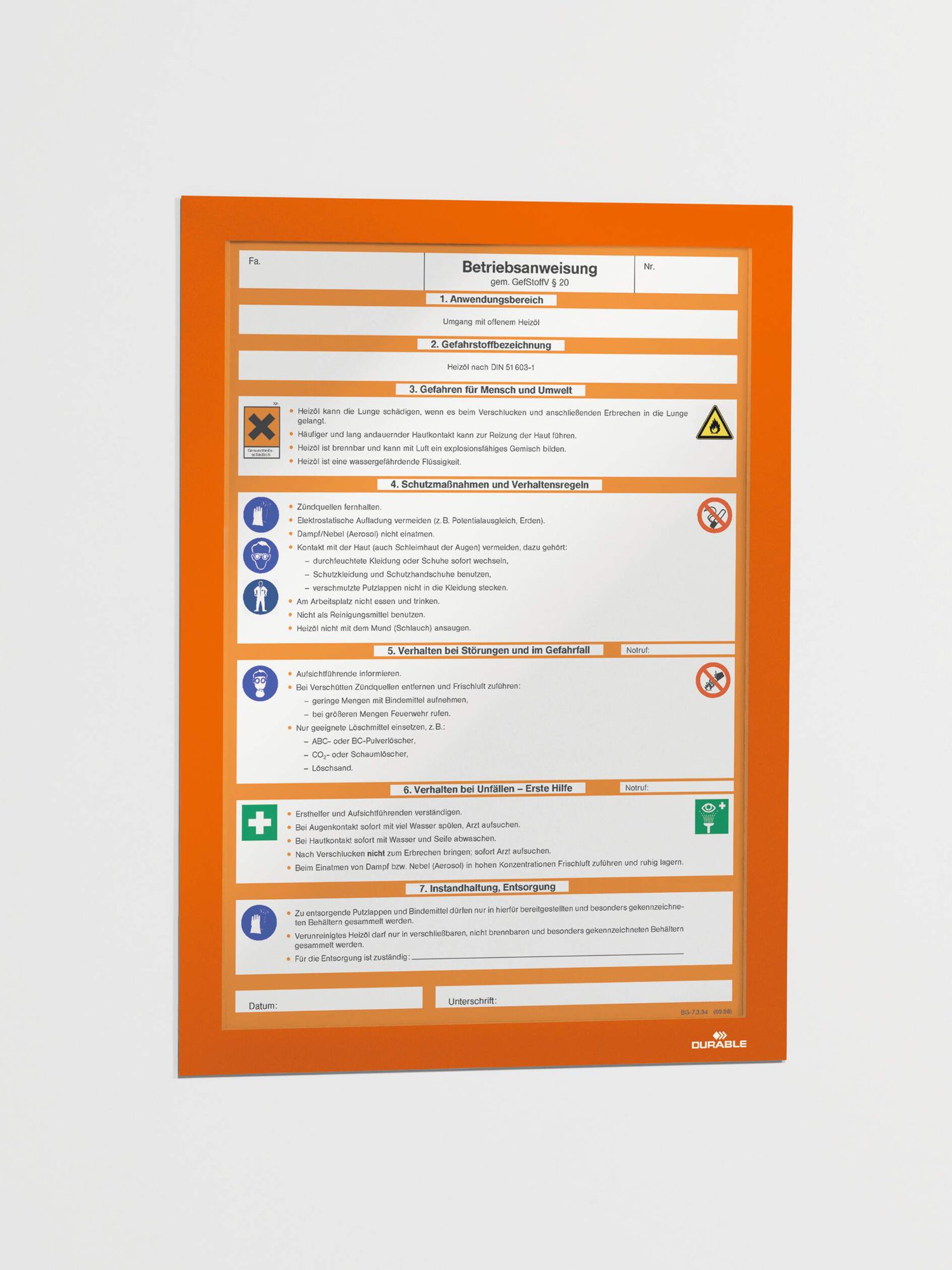 Durable DURAFRAME Adhesive A4 Orange