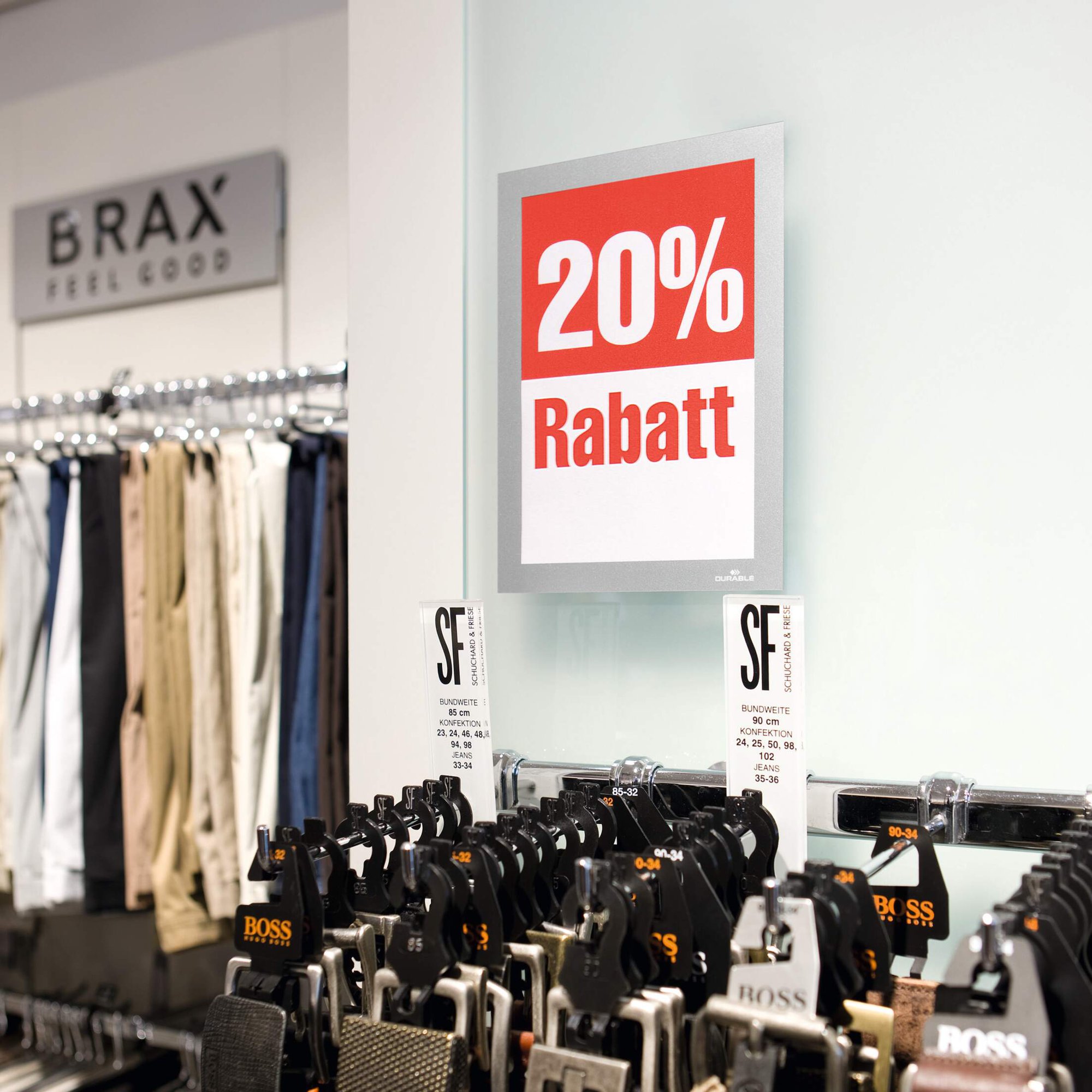 Great on Glass: UV Protection and identically coloured frame on both sides gives you a double sided signage solution
